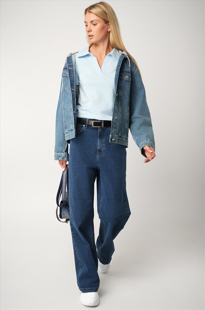 Преимущества: – натуральный хлопок с добавлением эластана для удобства в движении; – плотная трикотажная ткань (210 г/м2) дышит и приятно ощущается на теле; – удобный прямой крой подходит для женщин с любым типом фигуры; – легко сочетается в кэжуал стиле и с повседневным гардеробом. Голубая футболка поло из трикотажа кулирная гладь выполнена в лаконичном дизайне: прямой крой, отложной воротник и V-вырез добавляют изящности. Хлопковое поло подойдет для похода в офис, на прогулку и для дома. Рост модели 177 см, параметры: объем груди 85, объем талии 66, объем бедер 90. На ней размер 44.