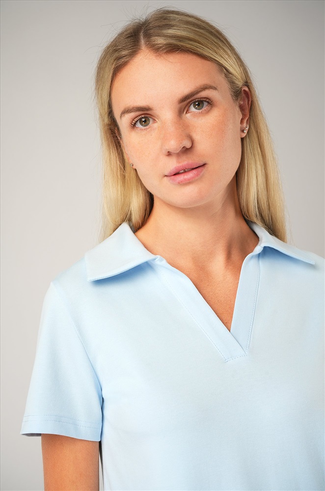 Женская футболка-поло из хлопка подарит легкость, комфорт и аккуратный внешний вид. Однотонная базовая тенниска в спортивном стиле станет твоим спутником на каждый день.