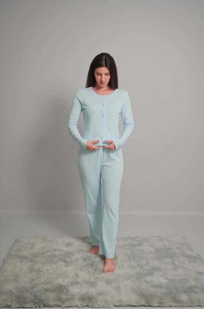 Преимущества: – натуральный 100% хлопок — мягкий и дышащий; – ажурная трикотажная ткань; – кофта на пуговицах с круглым вырезом; – широкие брюки на резинке с удобной посадкой; – однотонный комплект для сна и отдыха. Хлопковая женская пижама со штанами подойдёт для тех, кто ценит комфорт на каждый день. Этот домашний комплект для женщин легко впишется в расслабленный ритм уютного вечера и ленивого утра. Рост модели 175 см, параметры 88-68-102 см. На ней размер 44.