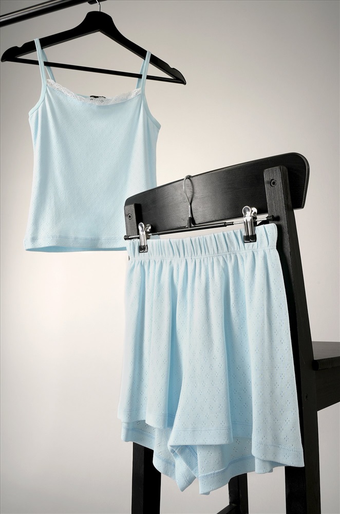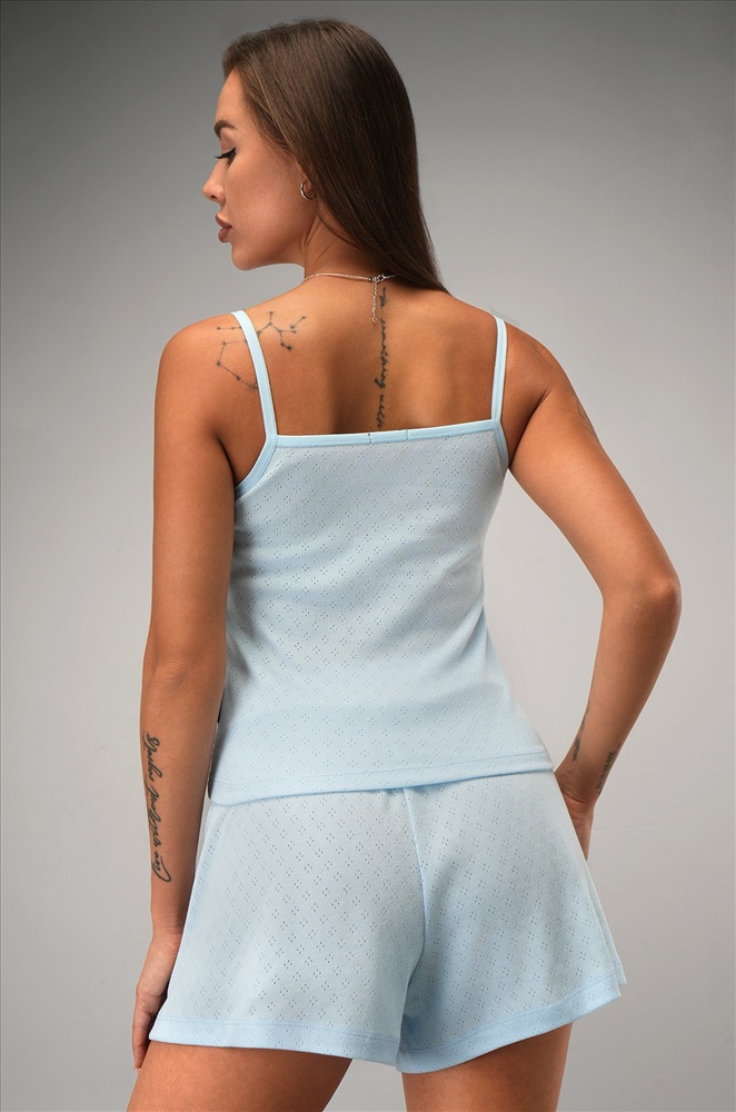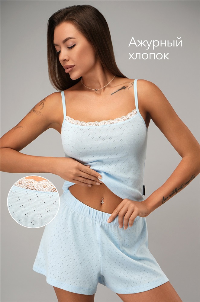 Изящная голубая женская пижама — тот самый комплект, в котором хочется проводить весь день. Лёгкая, нежная и ажурная — создана для удовольствия и комфорта.