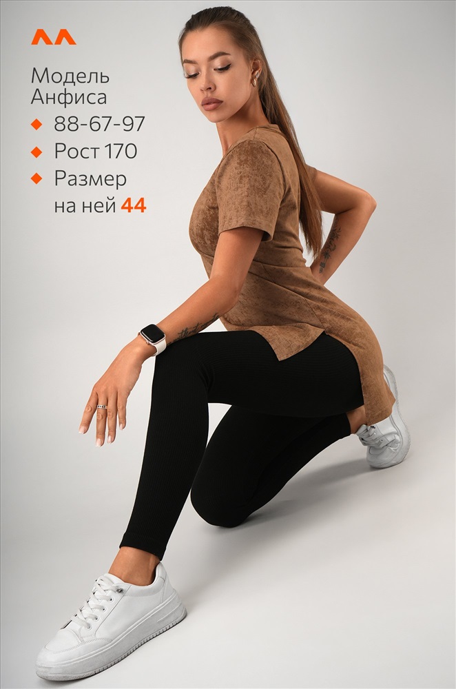 Модель Анфиса, рост 170 см, параметры 88-67-97 см. На ней размер 44.