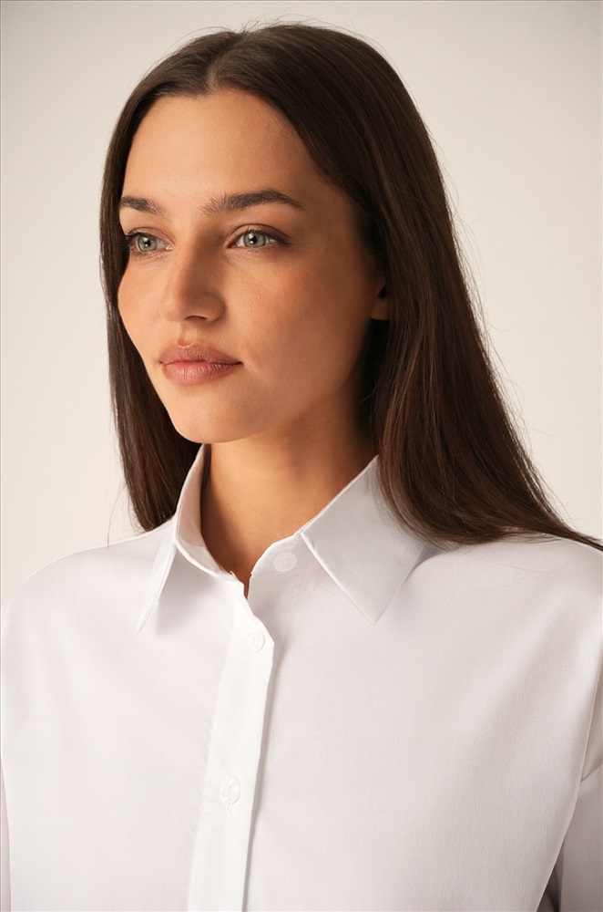 Шикарная женская рубашка оверсайз из натурального 100% хлопка станет стильной базой для любого образа. Объемные рукава-фонарики, удлиненная спинка и отложной воротник добавляют рубашке для женщин нотки нежности и романтики.