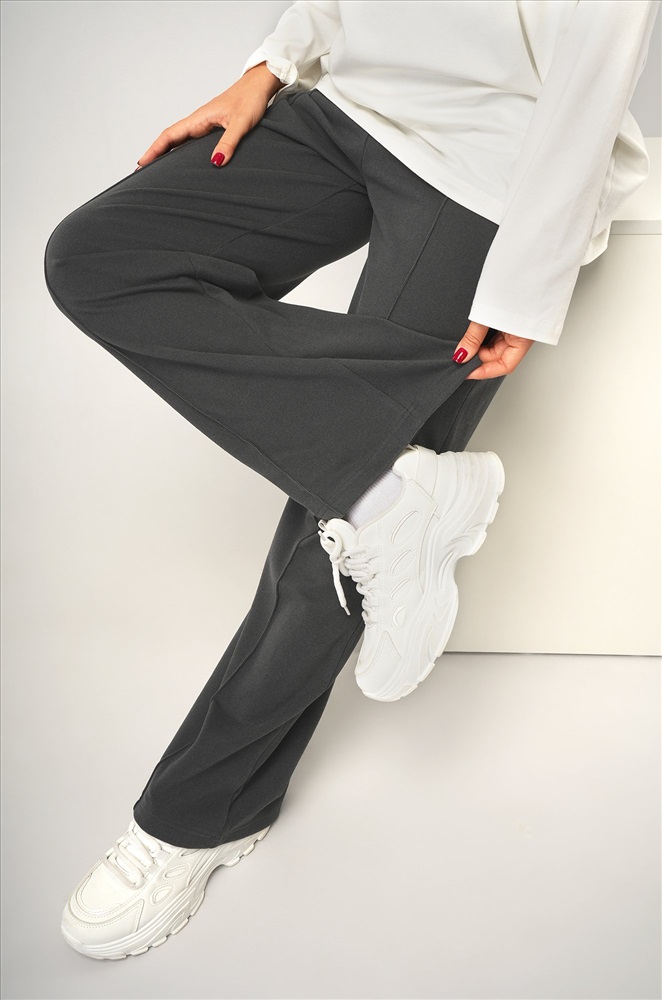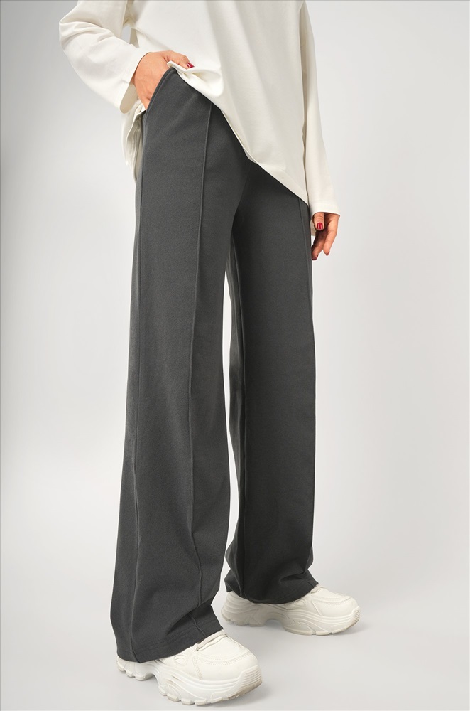 Мягкие и удобные брюки палаццо темно-серого цвета подойдут для девушек и женщин, которые ценят комфорт и элегантность. Широкие брюки можно носить в спортивном стиле или как домашние штаны для уютных вечеров. Демисезонные модели из плотной ткани создадут гармоничный осенний или весенний образ на каждый день.