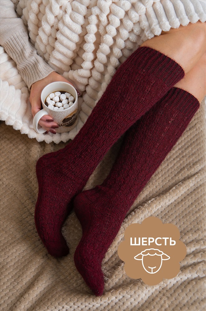 Невероятно мягкие и уютные гольфы выполнены из приятной к телу пряжи с добавлением натуральной овечьей шерсти. Однотонные бордовые гетры идеальны для уютных осенних вечеров в компании пледа и какао. Нежный узор добавит образу эстетики и кокетства, а теплая пряжа согреет в прохладное время года. Мягкая пряжа делает гольфы теплыми, плотными и идеальными для холодной осени, весны и зимы. Благодаря добавлению синтетических волокон они отлично тянутся и нежно облегают ножки. Гольфы вишневого цвета хорошо выдерживают многочисленные стирки, сохраняя первоначальный внешний вид. Высокая длина до колен делает термо гольфы для женщин комфортными и удобными для активных движений. Благодаря мягкой анатомической резинке гольфы плотно прилегают к телу и не давят. Длинные вязаные гольфы идеальны повседневных прогулок в осенние и морозные зимние дни. Комментарии к товару