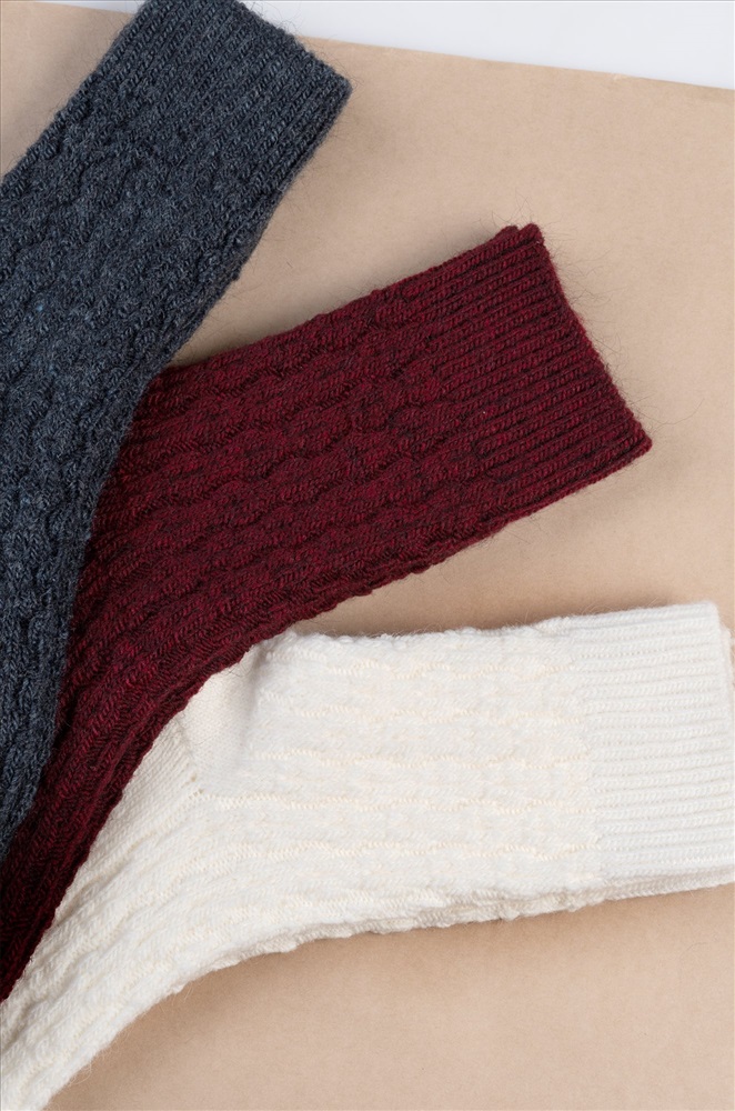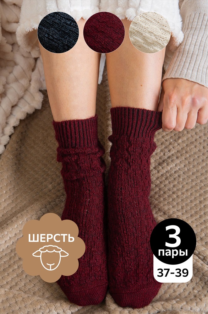 Набор теплых женских носков выполнен из приятной к телу пряжи с добавлением натуральной шерсти. Однотонные высокие носки идеальны для уютных осенних вечеров в компании пледа и какао. В наборе представлены 3 пары базовых цветов. Мягкая пряжа из шерсти делает удлиненные носки идеальными для осени и зимы. Благодаря полиамиду и эластану в составе они сохраняют форму даже после частых стирок и будут радовать девушку не один сезон. Домашние носочки нежно облегают ноги и не сползают при активных движениях благодаря плотной вязаной резинке. Красивый узорный орнамент добавляет нотку кокетства и эстетики. Комплект вязаных носков оценят те, кто любит проводить время на свежем воздухе, подойдут женщинам и девочкам-подросткам. Термоноски подходят для дома и зимних видов спорта. Набор шерстяных носков станет приятным подарком на Новый год или Рождество! Комментарии к товару