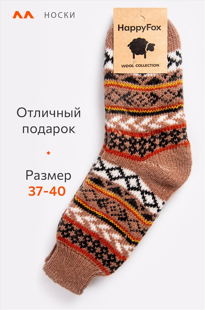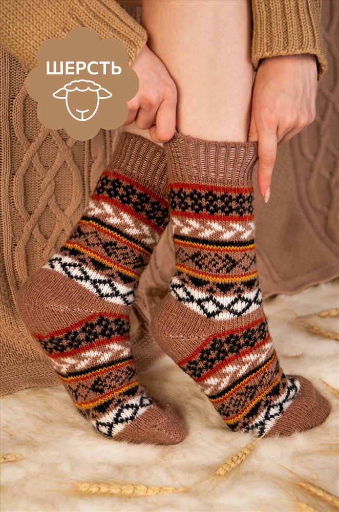 Бренд: Happyfox Серия: Happyfox- Уютные носки Страна: Россия Состав: 70% шерсть, 20% акрил, 10% полиамид Цвет: орнамент.коричневый