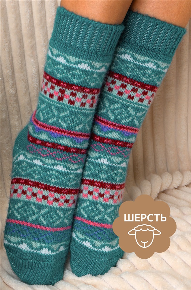 Теплые шерстяные носки для женщин выполнены из приятной к телу пряжи с высоким содержанием натуральной шерсти. Высокие носки с ярким орнаментом принесут не только тепло, но и радость в холодные дни. Вязаные носки подарят обладательнице исключительную мягкость и комфорт. Натуральная шерсть отлично сохраняет тепло и позволяет коже дышать, а акрил и полиамид добавляют прочности и эластичности. Высокие женские носки с широкой мягкой резинкой отлично держатся на ноге, мягко облегают, не передавливая в щиколотке. Красивые носочки универсального размера станут отличным дополнением к зимнему образу. Длинные носки из шерсти подойдут для женщин, которые ценят тепло и уют в зимний период, они идеальны для повседневного использования, а также для подарка на Новый год или Рождество. Комментарии к товару
