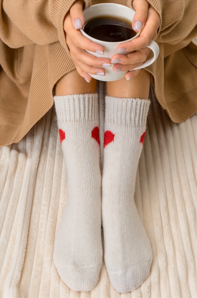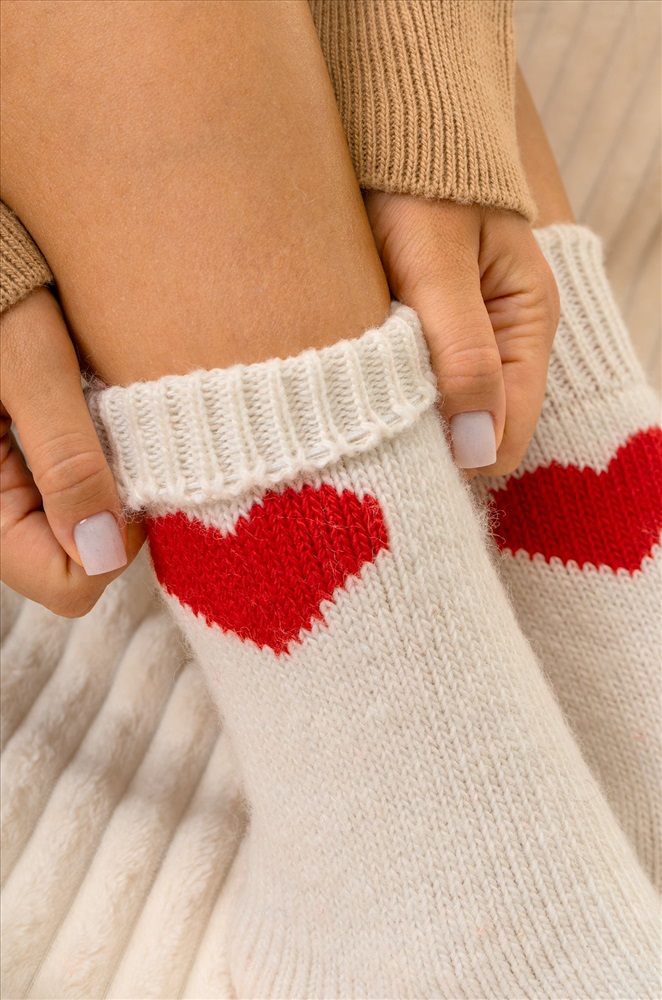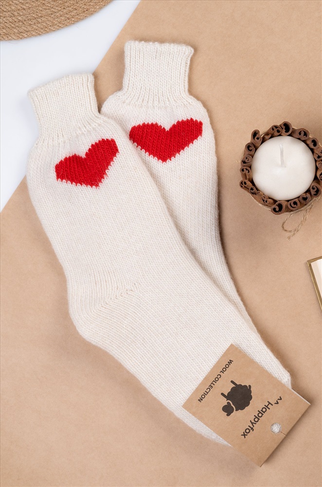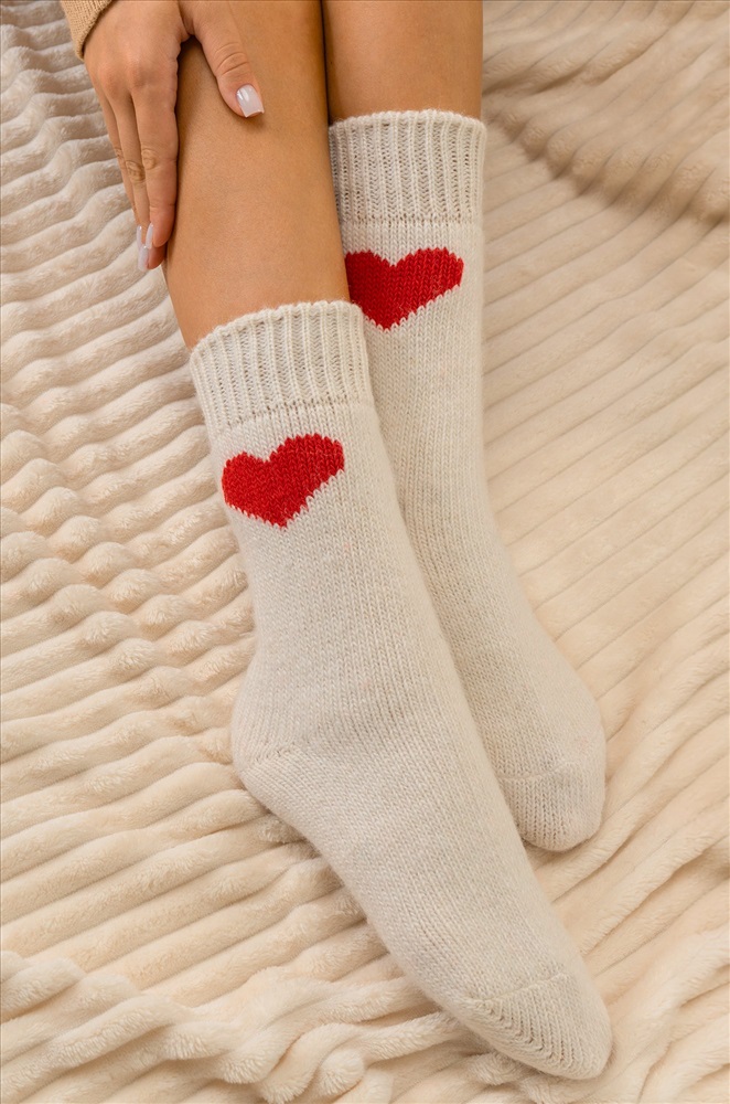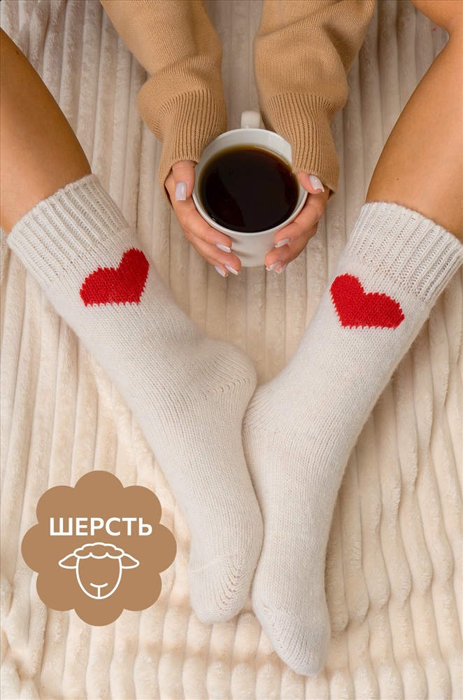Теплые шерстяные носки для женщин выполнены из приятной к телу пряжи с высоким содержанием натуральной шерсти. Белые носки с ярким рисунком Сердце принесут не только тепло, но и радость в холодные дни. Вязаные носки подарят обладательнице исключительную мягкость и комфорт. Натуральная шерсть отлично сохраняет тепло и позволяет коже дышать, а акрил и полиамид добавляют прочности и эластичности. Высокие женские носки с широкой мягкой резинкой отлично держатся на ноге, мягко облегают, не передавливая в щиколотке. Красивые носочки универсального размера станут отличным дополнением к зимнему образу. Длинные носки из шерсти подойдут для женщин, которые ценят тепло и уют в зимний период, они идеальны для повседневного использования, а также для подарка на Новый год или Рождество. Комментарии к товару