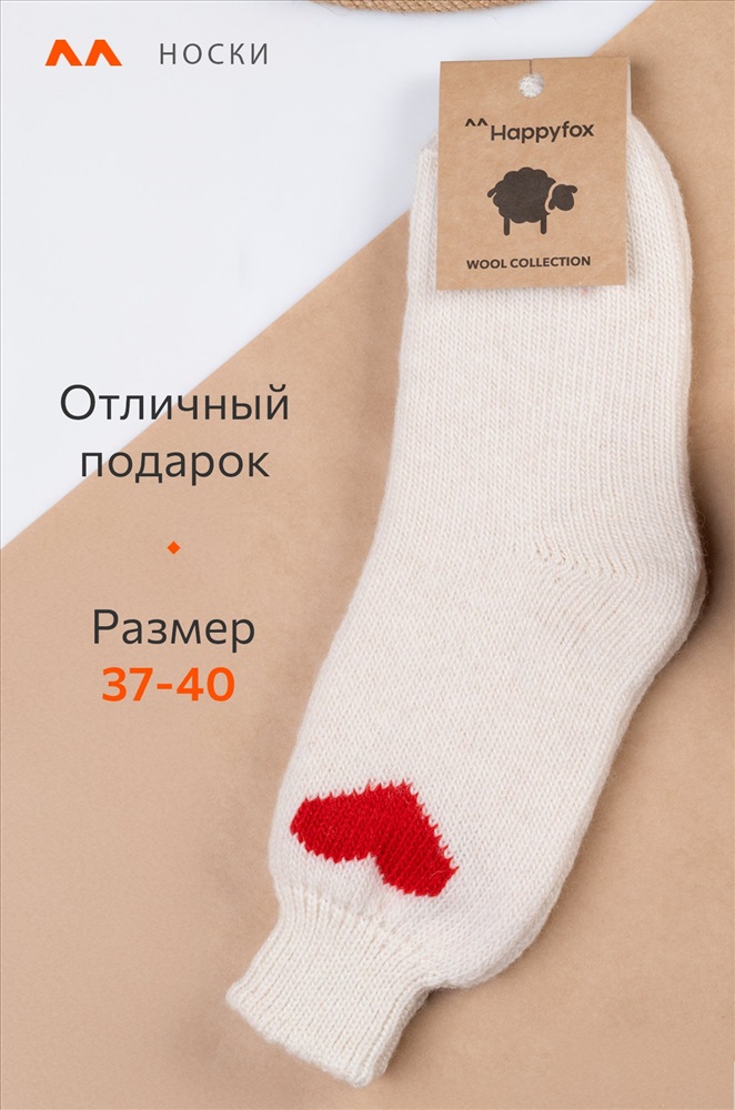 Бренд: Happyfox Серия: Happyfox- Уютные носки Страна: Россия Состав: 70% шерсть, 20% акрил, 10% полиамид Цвет: сердце.белый