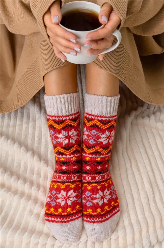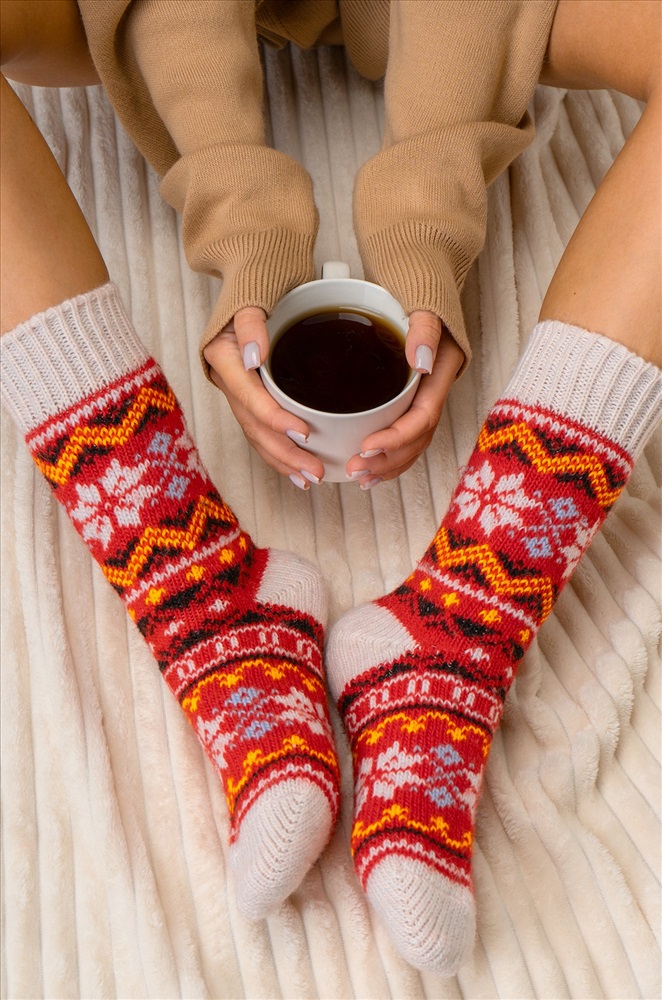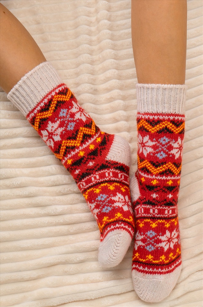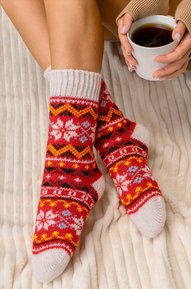 Теплые шерстяные носки для женщин выполнены из приятной к телу пряжи с высоким содержанием натуральной шерсти. Высокие носки с ярким узором принесут не только тепло, но и радость в холодные дни. Вязаные носки подарят обладательнице исключительную мягкость и комфорт. Натуральная шерсть отлично сохраняет тепло и позволяет коже дышать, а акрил и полиамид добавляют прочности и эластичности. Высокие женские носки с широкой мягкой резинкой отлично держатся на ноге, мягко облегают, не передавливая в щиколотке. Красивые носочки универсального размера станут отличным дополнением к зимнему образу. Длинные носки из шерсти подойдут для женщин, которые ценят тепло и уют в зимний период, они идеальны для повседневного использования, а также для подарка на Новый год или Рождество. Комментарии к товару