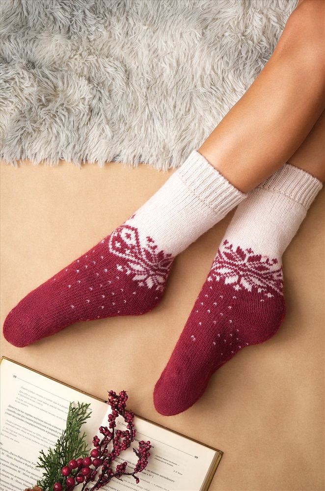 Уют начинается с деталей! Красно-белые носочки с узором Снежинки — приятный маленький акцент в новогодней атмосфере. Женские шерстяные носки создадут уют в доме и подарят ощущение тепла. Они идеально подойдут как для себя, так и в качестве подарка на Новый год или Рождество.