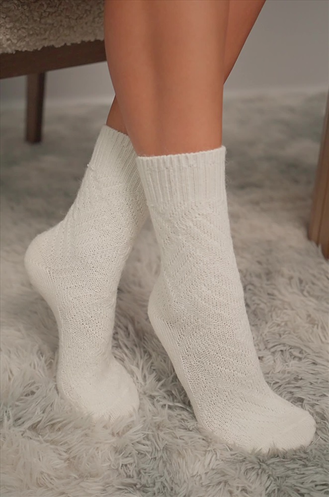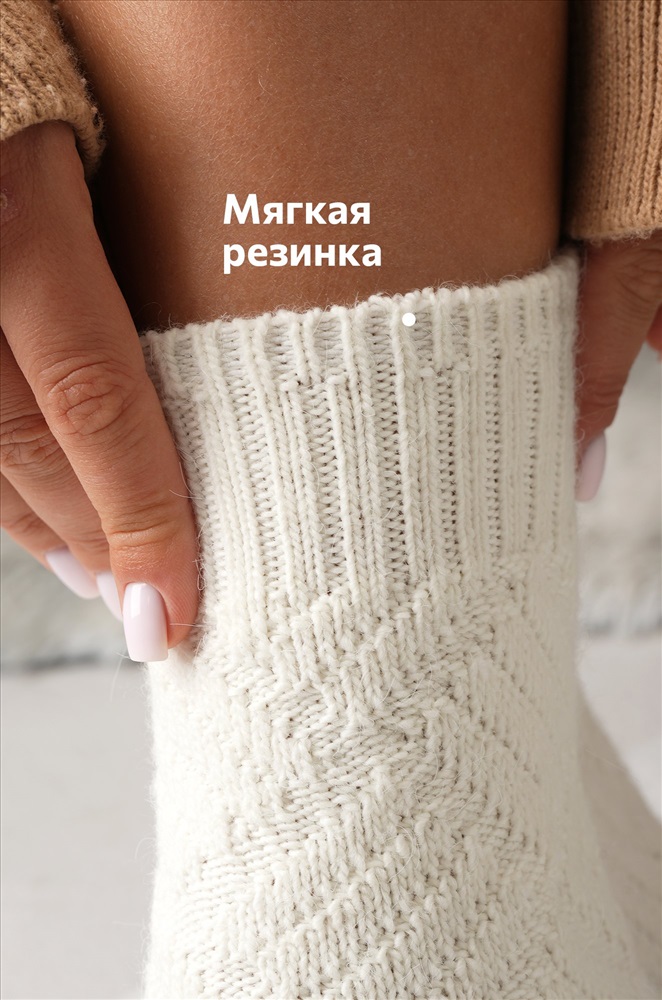 Уютные носочки для зимы! Однотонные белые носки подарят тепло в холодные дни. Высокие женские носки связаны из пряжи с добавлением шерсти.