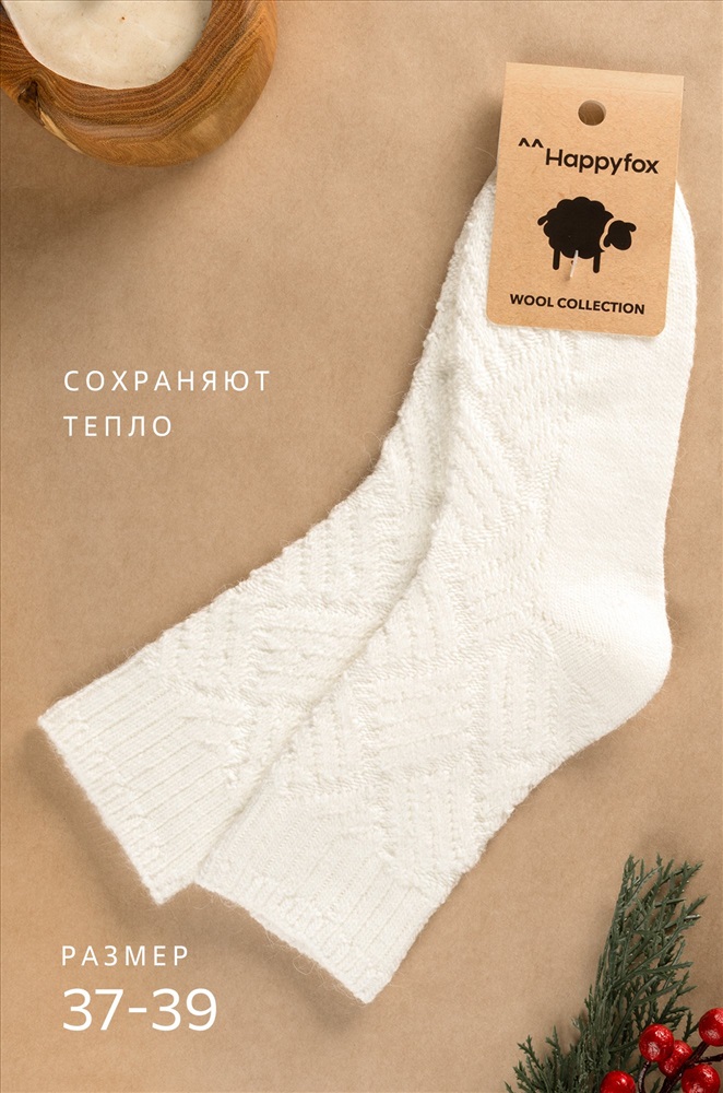 Бренд: Happyfox Серия: Happyfox- Уютные носки Страна: Россия Состав: 10% шерсть, 80% ПАН, 9% полиамид, 1% эластан Цвет: белый
