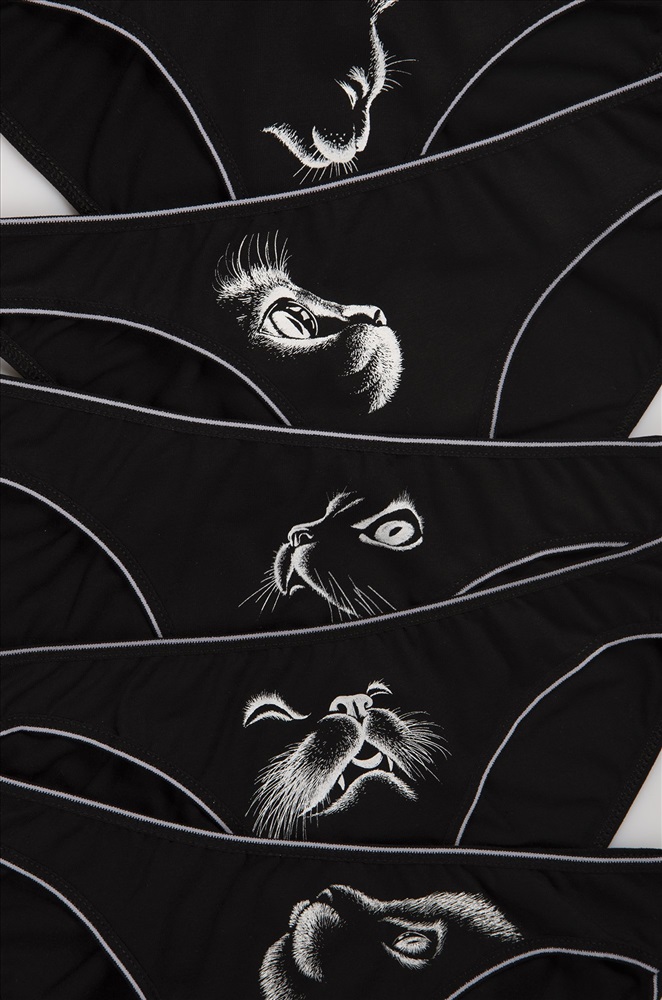 Черные трусы слипы и украшены принтом Кошки. Трусики средней посадки на мягкой резинке отлично тянутся и не сдавливают кожу. Аккуратно обработанные швы обеспечивают комфорт в течение всего дня. Рост модели 171 см, параметры объем груди 84 см, объем талии 60 см, обхват бедер 92 см. На ней трусы размера М. Внимание: трусы маломерят на один размер, принт в наборе может повторяться. Комментарии к товару