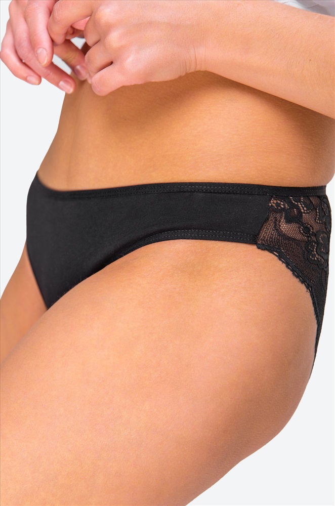 Женские кружевные трусы выполнены из дышащей хлопковой ткани. Удобная средняя посадка подарит чувство комфорта и уверенности в себе. Повседневные слипы для женщин представлены в базовом черном цвете.