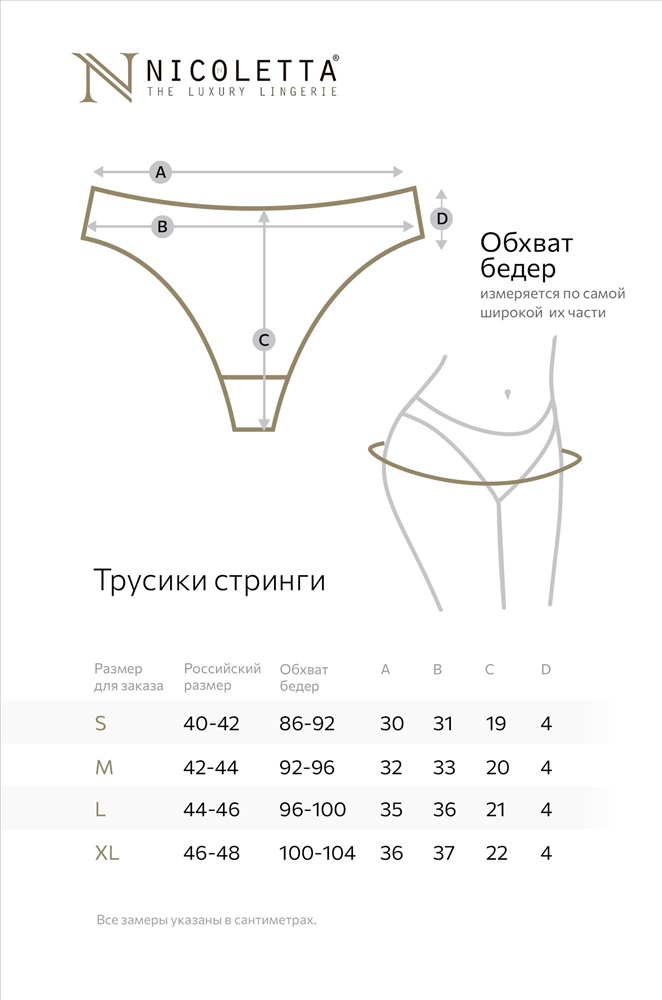 Натуральный хлопок приятен к телу и позволяет коже дышать. Благодаря небольшому количеству эластана трусы более эластичные и отлично выдерживают частые стирки. Однотонные трусики средней посадки с аккуратно обработанными швами обеспечивают комфорт в течение всего дня. Стринги с поясом на мягкой резинке плотно прилегают, комфортно сидят и практически незаметны под одеждой. Удобные и практичные женские стринги прекрасно подходят на каждый день, в них можно заниматься спортом и активными физическими упражнениями, а также идеально себя чувствовать во время сна. Если Вы ищете наборы нижнего белья Nicoletta, возможно, этот комплект неделька, 7 штук, Вам идеально подойдет. Модель Лиза, рост 168, 84-62-90. На ней трусики размера M. Комментарии к товару
