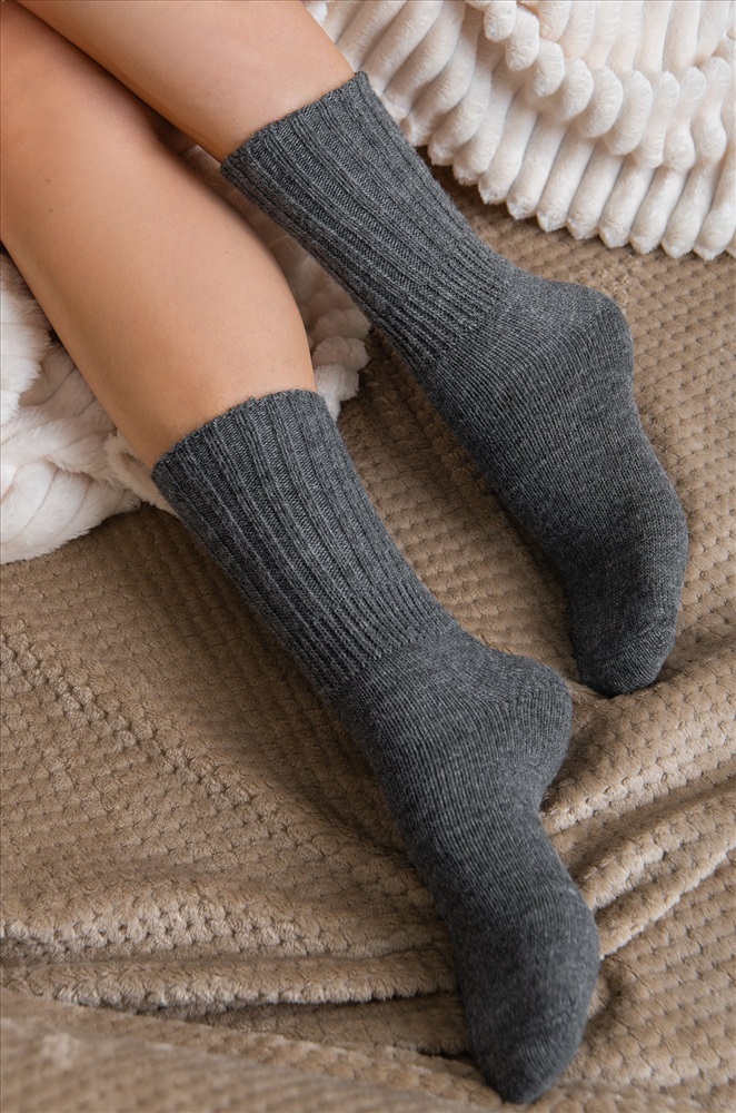 Теплые женские носки выполнены из приятной к телу пряжи с добавлением натуральной шерсти. Однотонные высокие носки серого цвета идеальны для уютных осенних вечеров в компании пледа и какао. Мягкая пряжа из шерсти делает удлиненные носки идеальными для осени и зимы. Благодаря полиамиду и эластану в составе они сохраняют форму даже после частых стирок и будут радовать девушку не один сезон. Домашние носочки нежно облегают ноги и не сползают при активных движениях благодаря плотной вязаной резинке. Вязаные носки оценят те, кто любит проводить время на свежем воздухе, подойдут женщинам и девочкам-подросткам. Термоноски подходят для дома и зимних видов спорта. Шерстяные носки станут приятным дополнением к подарку на Новый год или Рождество! Комментарии к товару