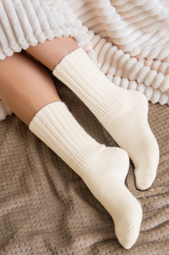 Теплые женские носки выполнены из приятной к телу пряжи с добавлением натуральной шерсти. Однотонные высокие носки белого цвета идеальны для уютных осенних вечеров в компании пледа и какао. Мягкая пряжа из шерсти делает удлиненные носки идеальными для осени и зимы. Благодаря полиамиду и эластану в составе они сохраняют форму даже после частых стирок и будут радовать девушку не один сезон. Домашние носочки нежно облегают ноги и не сползают при активных движениях благодаря плотной вязаной резинке. Вязаные носки оценят те, кто любит проводить время на свежем воздухе, подойдут женщинам и девочкам-подросткам. Термоноски подходят для дома и зимних видов спорта. Шерстяные носки станут приятным дополнением к подарку на Новый год или Рождество! Комментарии к товару