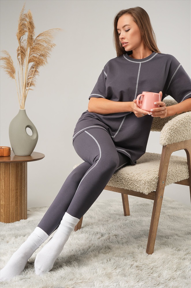 Удобный, стильный и продуманный до мелочей женский костюм с лосинами от Happyfox сочетает в себе комфорт и изящность. Темно-серый спортивный костюм станет любимым вариантом как для дома, так и для спорта.