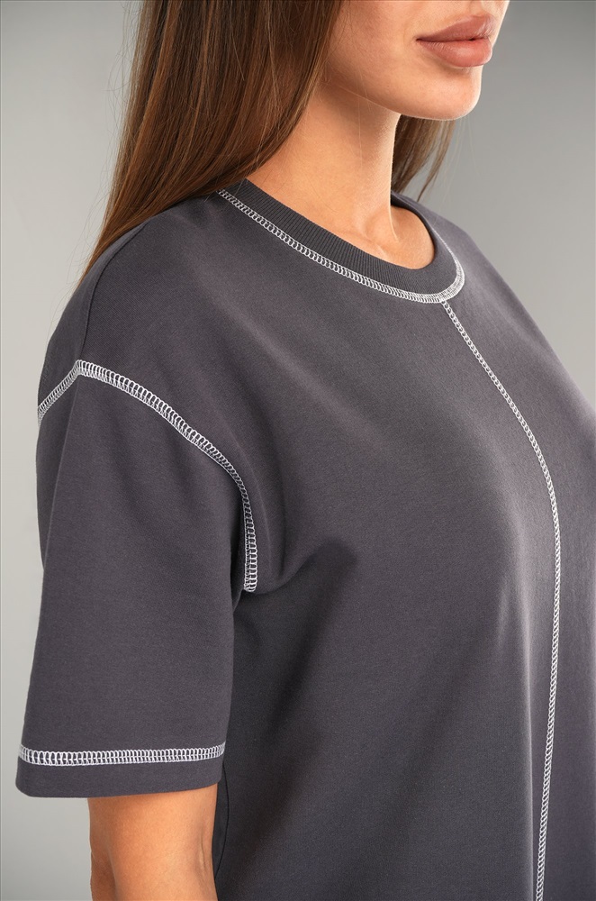 Преимущества: — костюм двойка из хлопка и лайкры с комфортной посадкой; — футболка свободного кроя из плотного хлопкового трикотажа (плотность 225 г/м2); — эластичные легинсы с удобной резинкой в поясе; — однотонный дизайн с контрастной декоративной отстрочкой; — приятная к телу ткань, дышащая и устойчивая к износу. Футболка с круглым вырезом и спущенным плечом создаёт расслабленный силуэт, а лосины подчёркивают фигуру и добавляют динамики образу. Трикотажный костюм для женщин — универсальный выбор: он отлично подойдёт для спортивных занятий в зале и станет удобным домашним комплектом на каждый день.