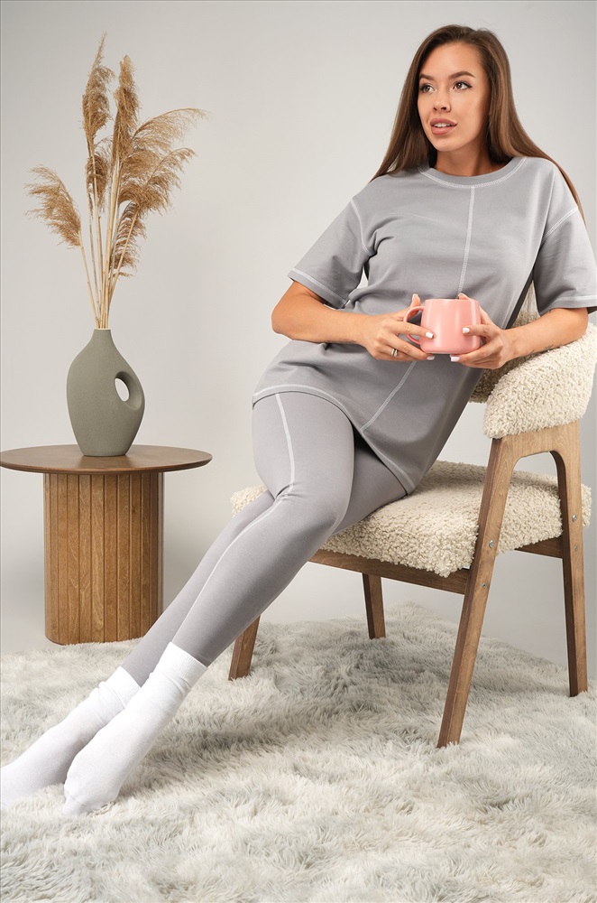 Удобный, стильный и продуманный до мелочей женский костюм с лосинами от Happyfox сочетает в себе комфорт и изящность. Светло-серый спортивный костюм станет любимым вариантом как для дома, так и для спорта.