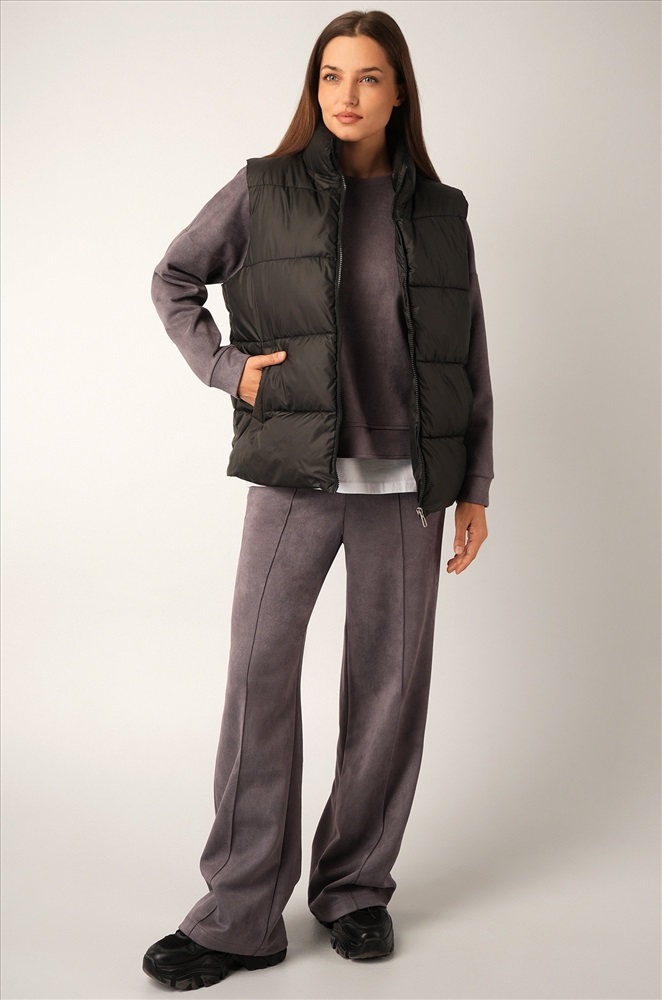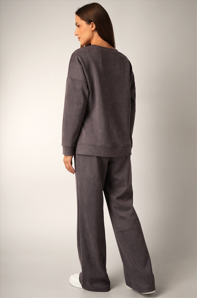 Женский костюм двойка, который влюбляет с первого взгляда! Мягкая экозамша, уютный лонгслив и широкие штаны палаццо создают образ, в котором захочется провести весь день. Универсальный вариант для девушек и женщин, который легко подстраивается под ритм осени и весны.