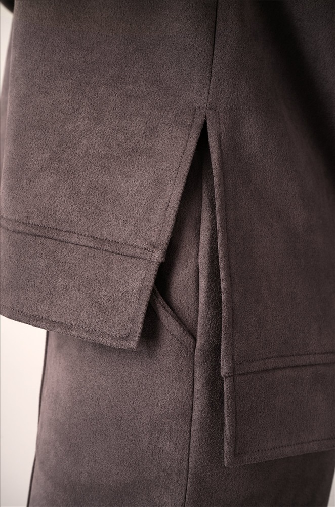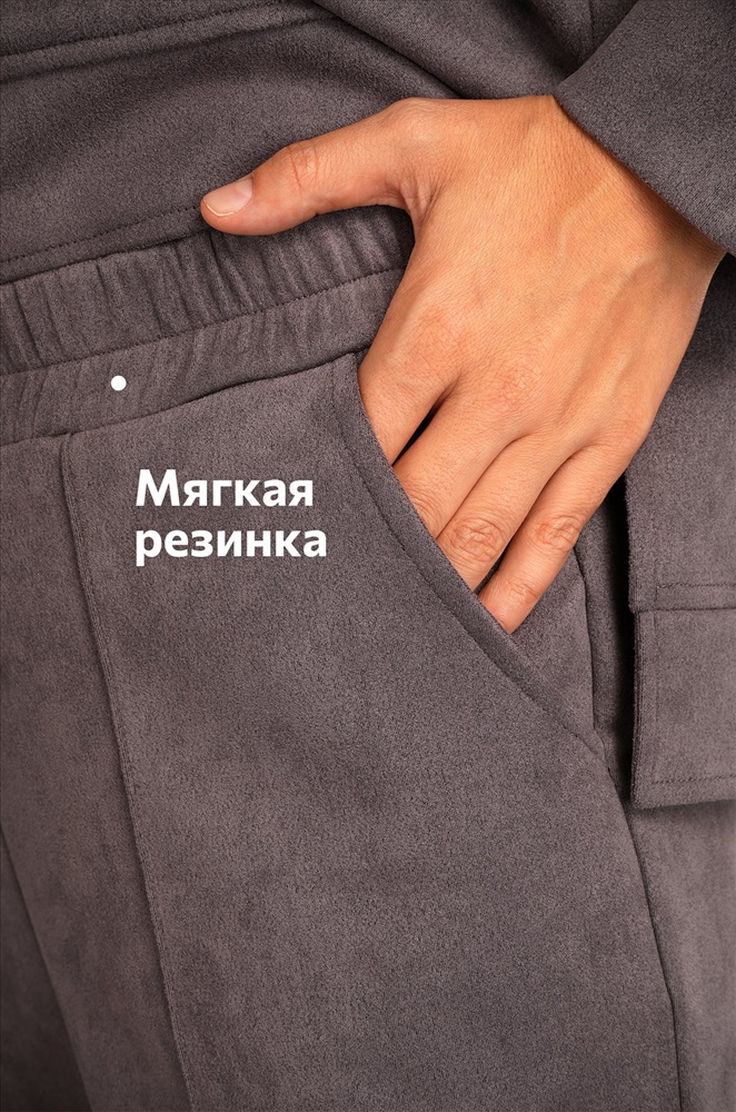Преимущества: – выполнен из плотной экозамши, приятной к телу; – удобный лонг оверсайз с удлинённой спинкой и разрезами; – широкие брюки с декоративными стрелками; – пояс на резинке и практичные карманы; – однотонный универсальный цвет. Базовый брючный костюм серого цвета отлично подойдёт для прогулок, работы или отдыха на каждый день. Демисезонный, осенний или весенний — он всегда будет выглядеть стильно и подарит комфорт в любой ситуации. Рост модели 166 см, параметры 77-64-92 см. На ней размер 44.