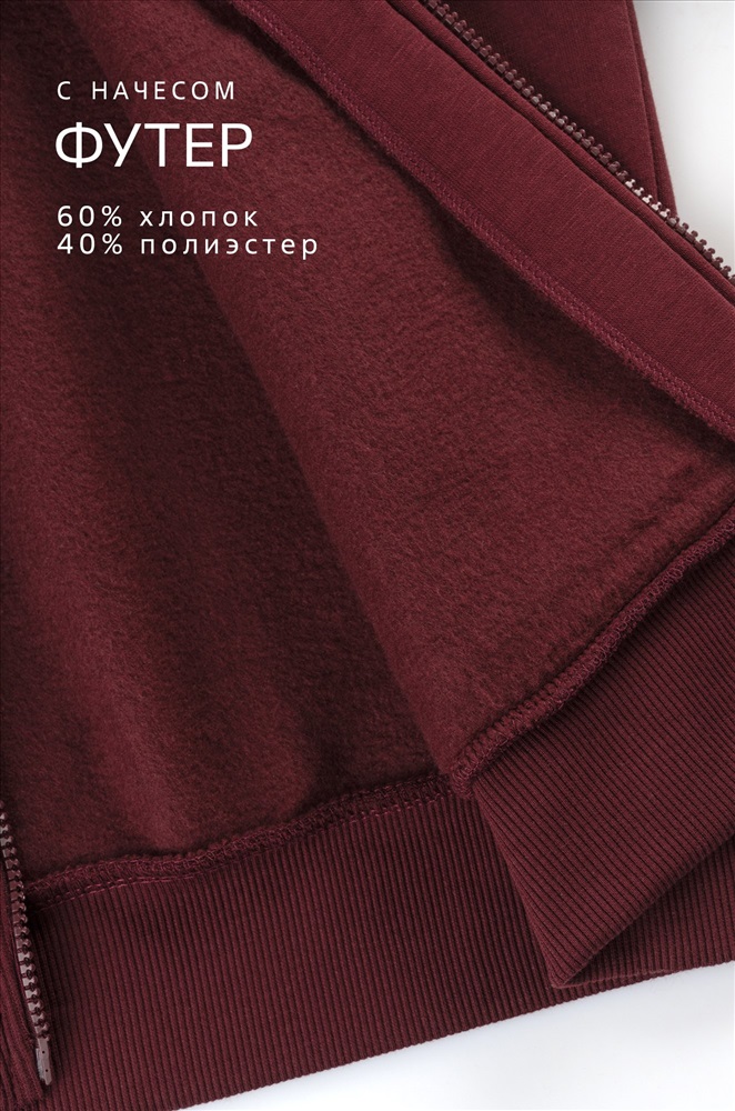 Бренд: Happyfox Страна: Узбекистан Состав: 60% хлопок, 40% полиэстер Материал: Футер с начёсом Плотность ткани: 320 г/м2 Цвет: бордовый