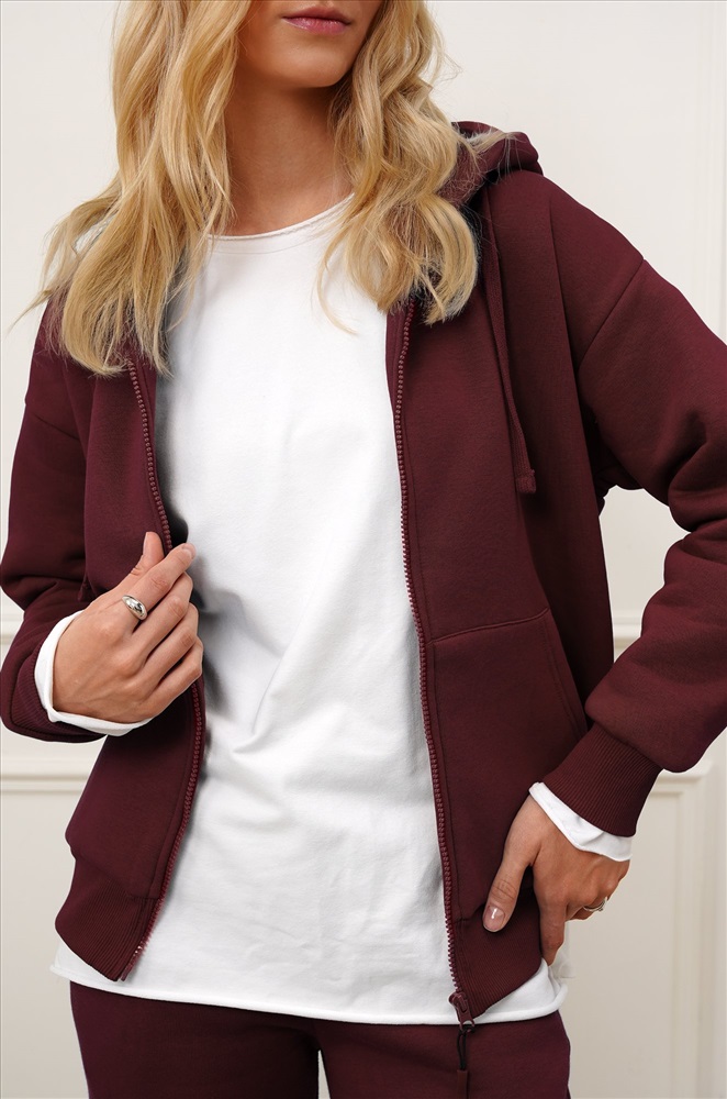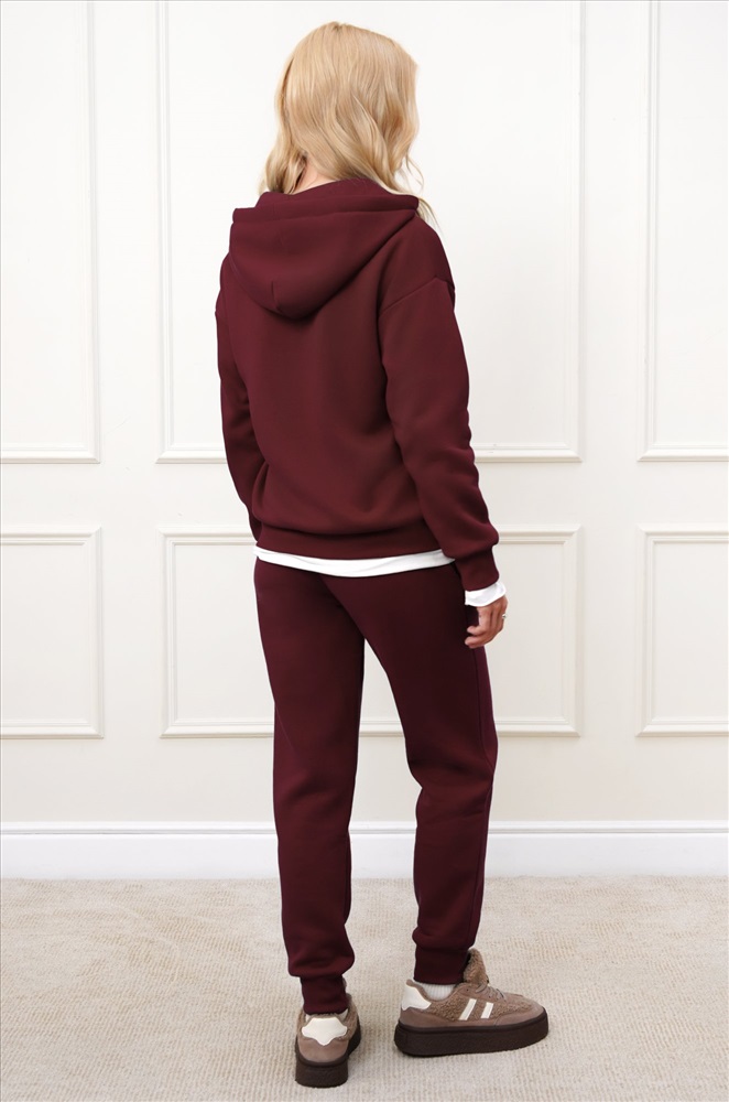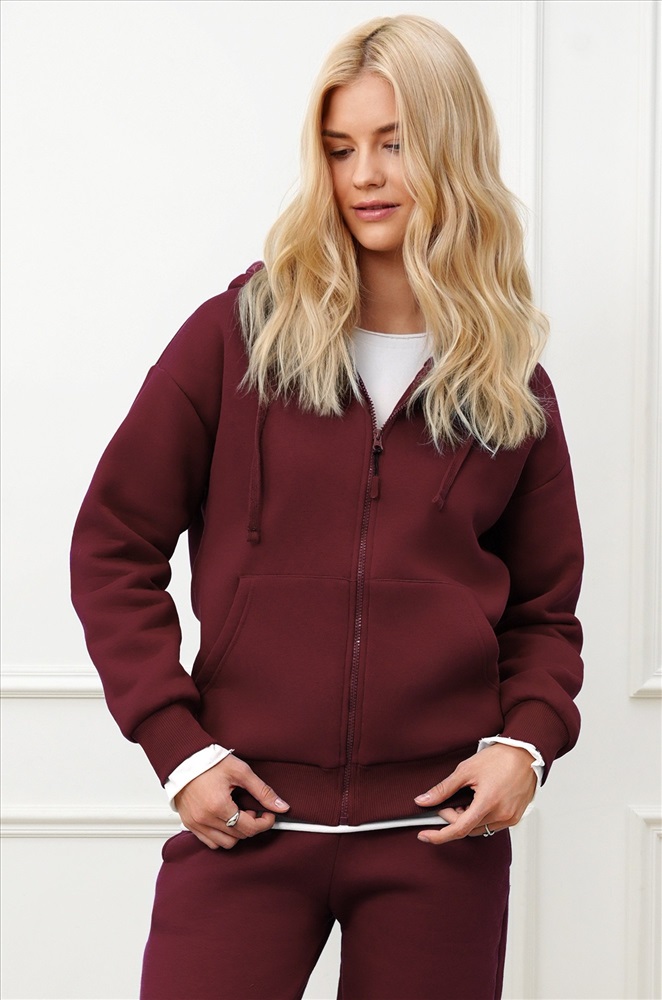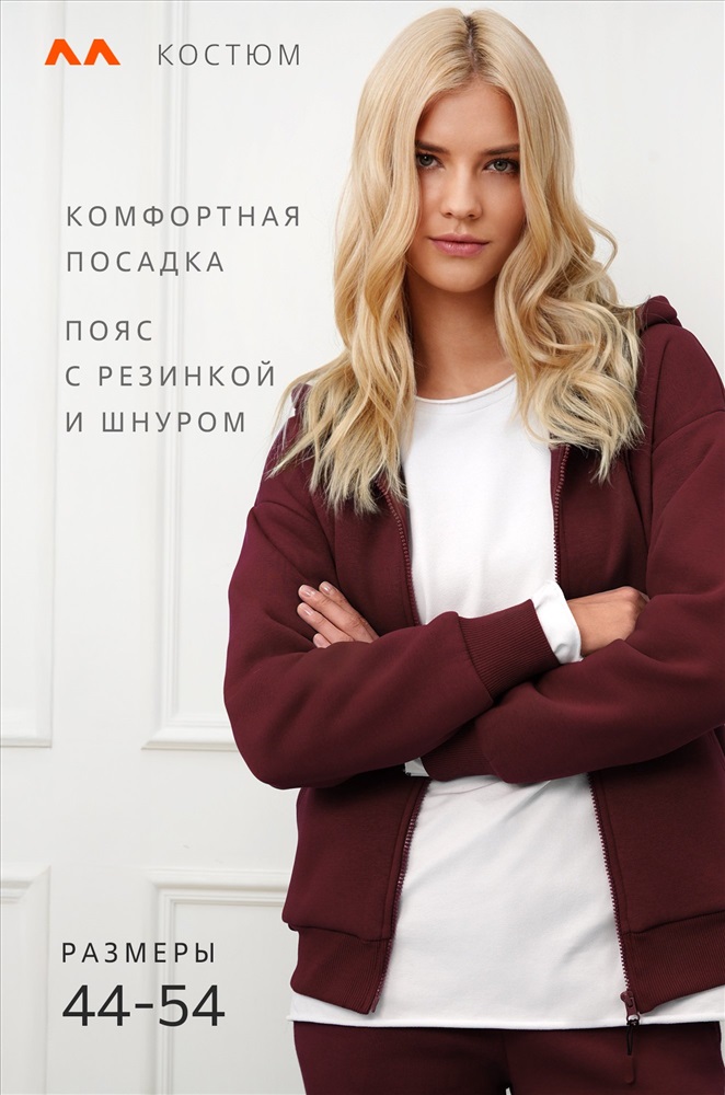 Преимущества: — спортивный костюм из футера с начесом надежно сохраняет тепло осенью и зимой; — манжеты на рукавах и по низу дарят комфорт и защиту от ветра; — спереди удобный карман-кенгуру; — трикотажный костюм из хлопка приятен к телу; — благодаря добавлению полиэстера утепленный костюм двойка темно-красного цвета не теряет форму и цвет после стирок; — однотонный бордовый костюм подойдет для осенних и зимних дней. Хлопковый костюм для женщин идеален для прогулок, путешествий и активного отдыха.