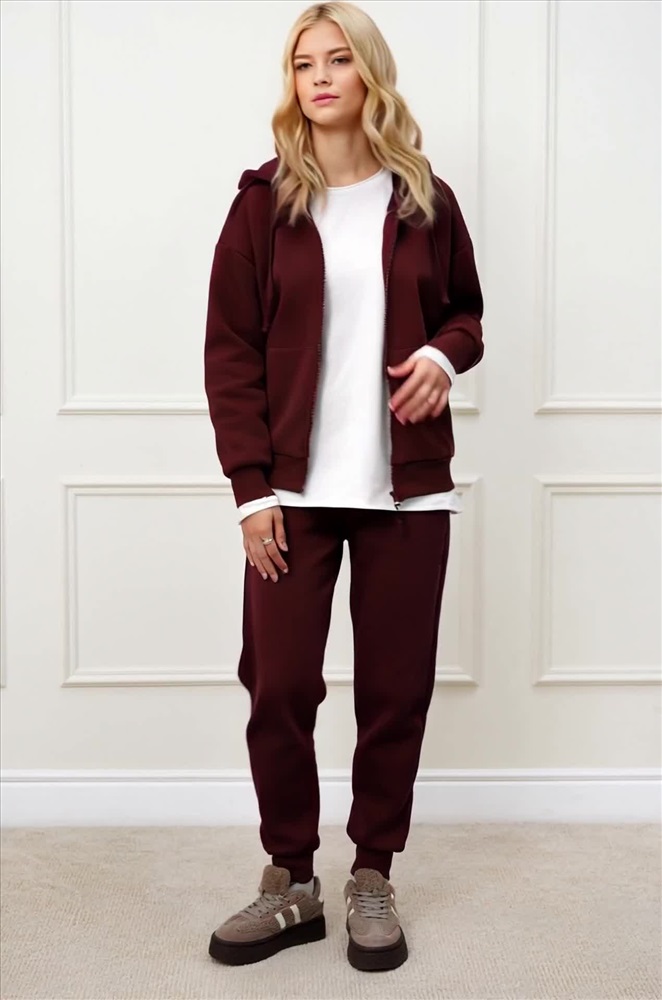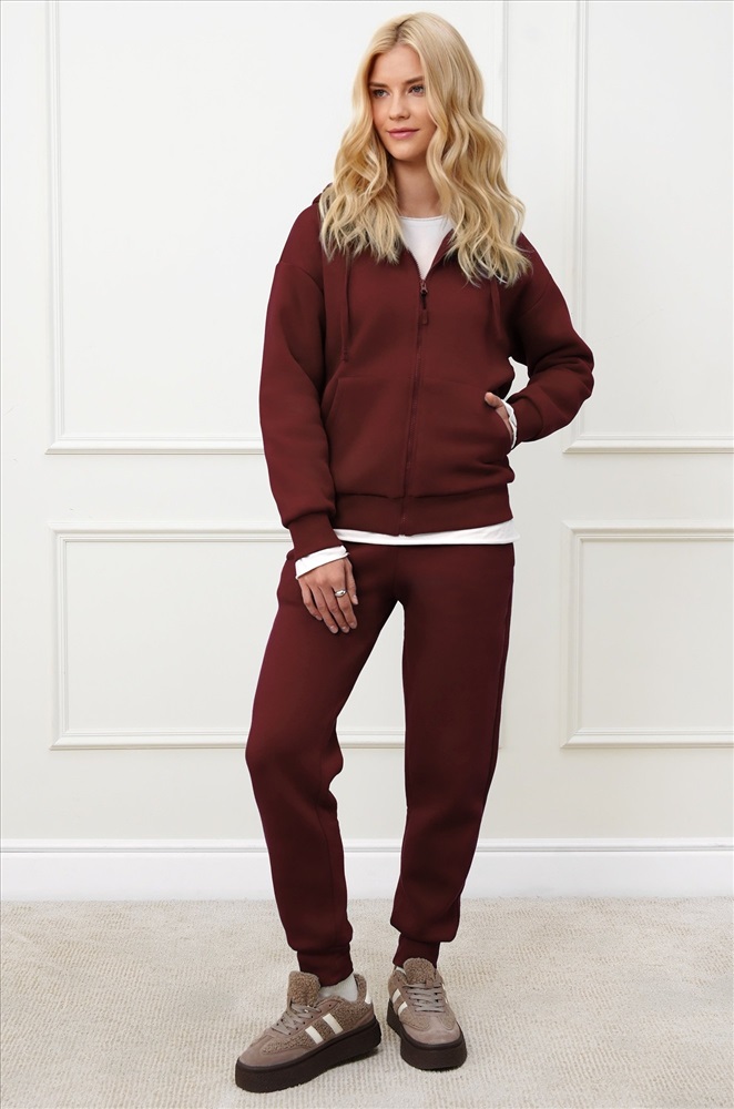 Женский теплый костюм с начесом — стильное и практичное решение для холодного времени года. В набор входят худи на молнии с капюшоном и удобные брюки-джоггеры.