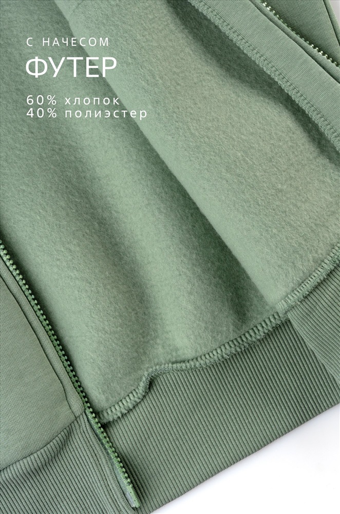 Бренд: Happyfox Страна: Узбекистан Состав: 60% хлопок, 40% полиэстер Материал: Футер с начёсом Плотность ткани: 320 г/м2 Цвет: полынь