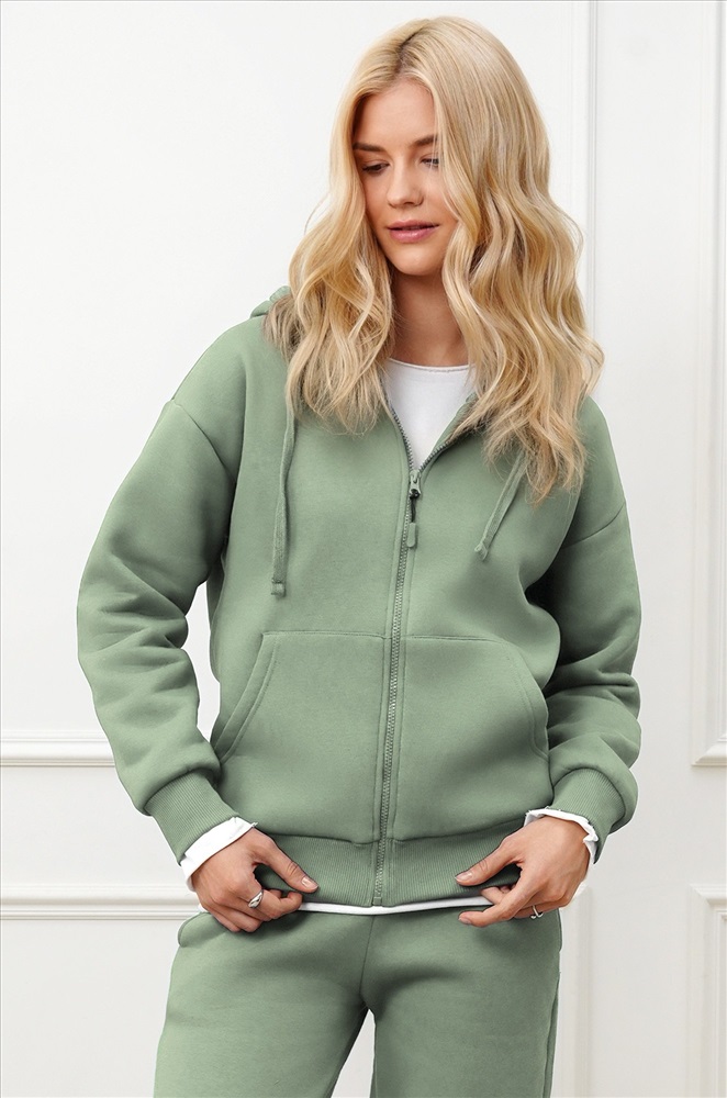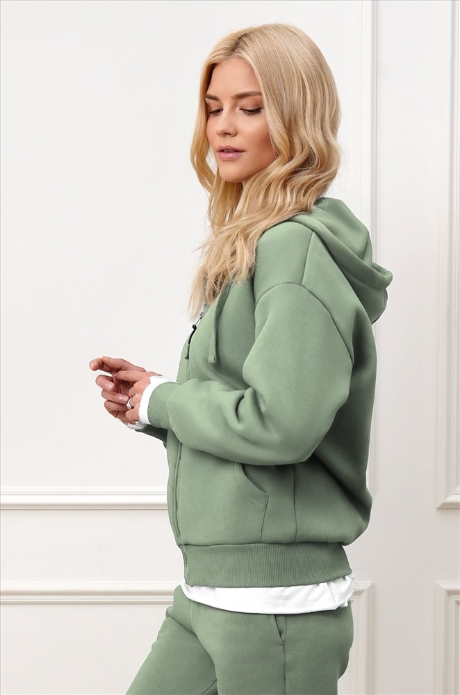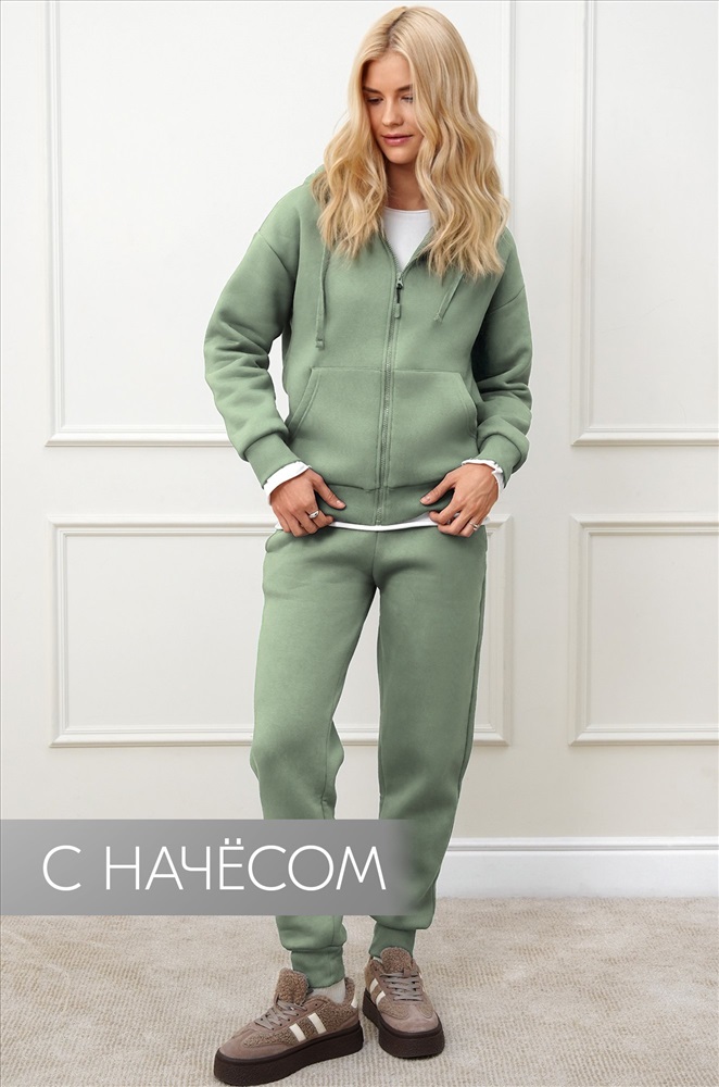 Преимущества: — спортивный костюм из футера с начесом надежно сохраняет тепло осенью и зимой; — манжеты на рукавах и по низу дарят комфорт и защиту от ветра; — спереди удобный карман-кенгуру; — трикотажный костюм из хлопка приятен к телу; — благодаря добавлению полиэстера утепленный костюм двойка оттенка полынь не теряет форму и цвет после стирок; — однотонный светло-зеленый костюм подойдет для осенних и зимних дней. Хлопковый костюм для женщин идеален для прогулок, путешествий и активного отдыха.