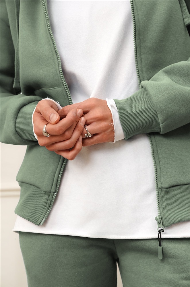Женский теплый костюм с начесом — стильное и практичное решение для холодного времени года. В набор входят худи на молнии с капюшоном и удобные брюки-джоггеры.