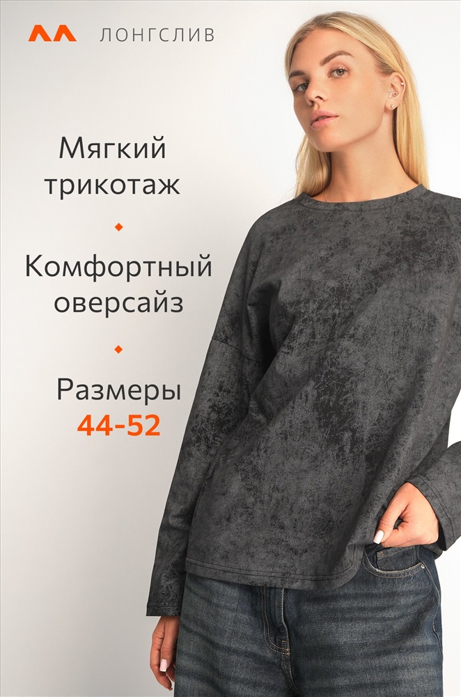 Преимущества: — 100% хлопок: дышащая кулирная гладь средней плотности 190 г/м²; — мягкий, приятный к телу трикотаж хорошо пропускает воздух; — свободный крой и удлинённый силуэт; — ткань с эффектом варёнка — винтажный акцент в повседневном образе; — аккуратная круглая горловина и длинные рукава; — глубокий чёрный оттенок универсален и практичен. Хлопковый лонгслив для женщин подойдёт для прогулок, отдыха и уютных вечеров. Модель Валентина, рост 177 см, параметры: 85-66-90. На ней размер 44.