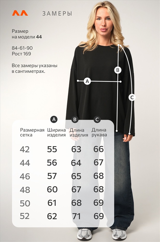 Преимущества: – натуральный хлопок с добавлением эластана для комфорта (плотность 160 г/м2); – трикотажный материал мягкий и дышащий; – удобный оверсайз для свободы движений; – универсальная базовая модель на каждый день; – подходит как для девушек, так и для подростков. Прямой силуэт, спущенное плечо и круглый вырез создают расслабленный женский джемпер, который легко впишется в любой стиль. Подростковая кофта, как и лонгслив для женщин подойдёт для офиса и для прогулки — всегда выглядит легко и современно. Рост модели 169 см, параметры: объем груди 84, объем талии 61, объем бедер 90. На ней размер 44.