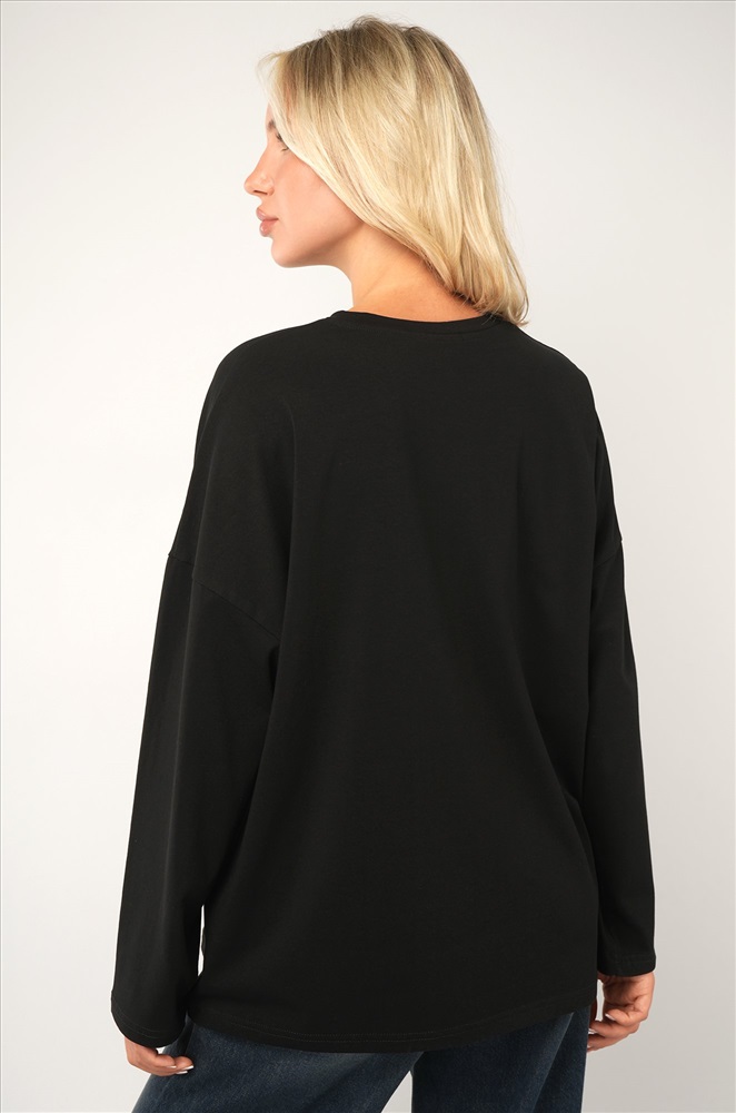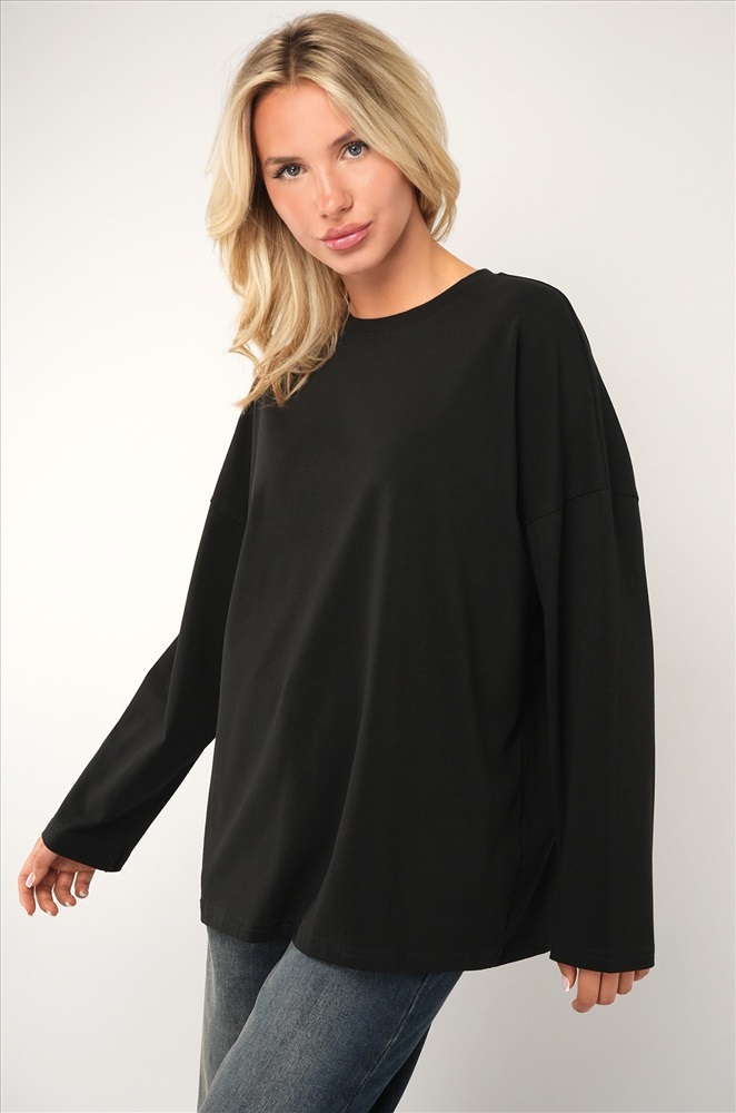 Женский лонгслив оверсайз создан, чтобы дарить свободу и комфорт в любую погоду. Однотонный черный лонг смотрится стильно и сдержанно, а хлопковый трикотаж делает его невероятно приятным к телу.