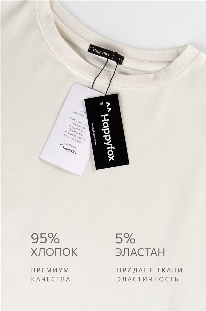 Бренд: Happyfox Страна: Узбекистан Состав: 95% хлопок, 5% эластан Материал: Кулирная гладь Плотность ткани: 160 г/м2 Цвет: молочный