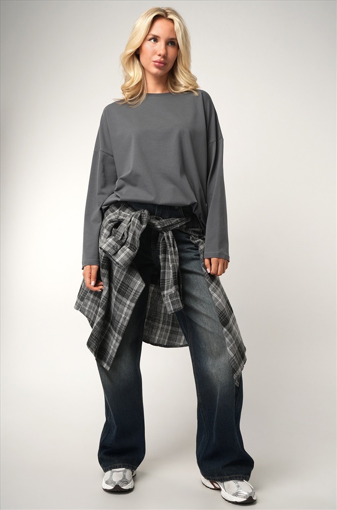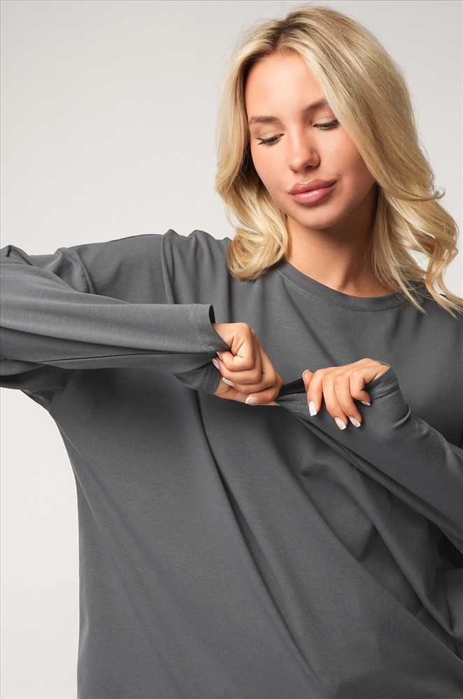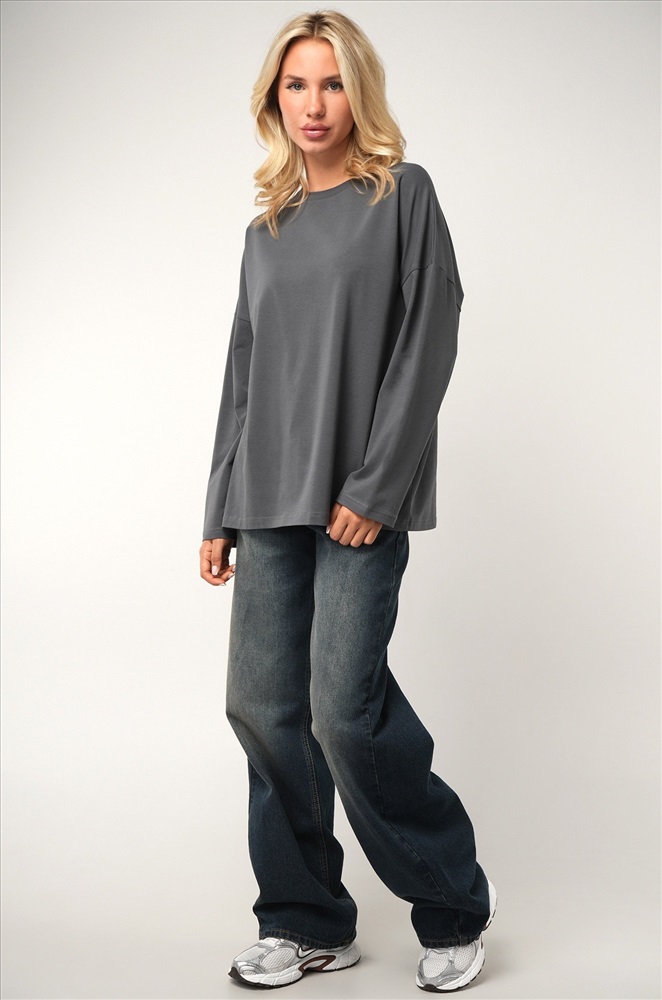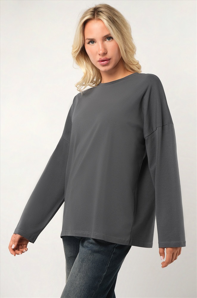Женский лонгслив оверсайз создан, чтобы дарить свободу и комфорт в любую погоду. Однотонный лонг графитового цвета смотрится стильно и сдержанно, а хлопковый трикотаж делает его невероятно приятным к телу.