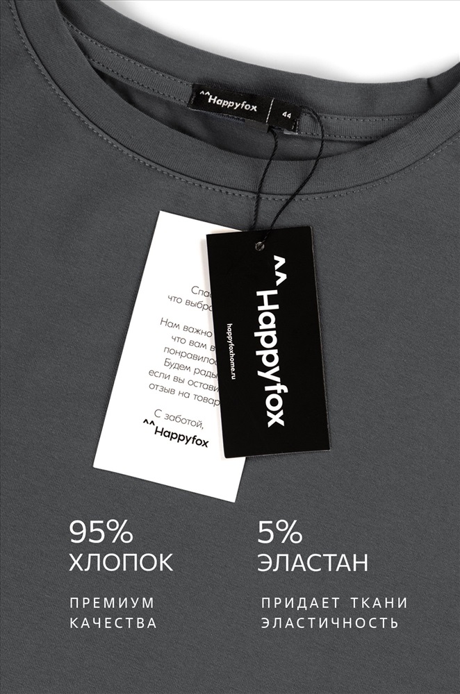 Бренд: Happyfox Страна: Узбекистан Состав: 95% хлопок, 5% эластан Материал: Кулирная гладь Плотность ткани: 160 г/м2 Цвет: графит