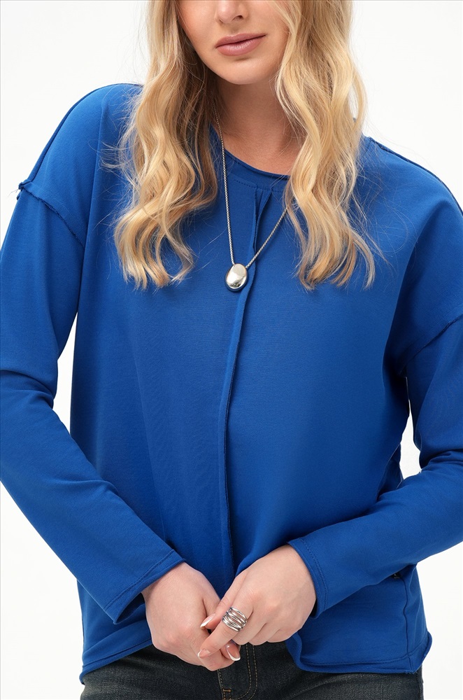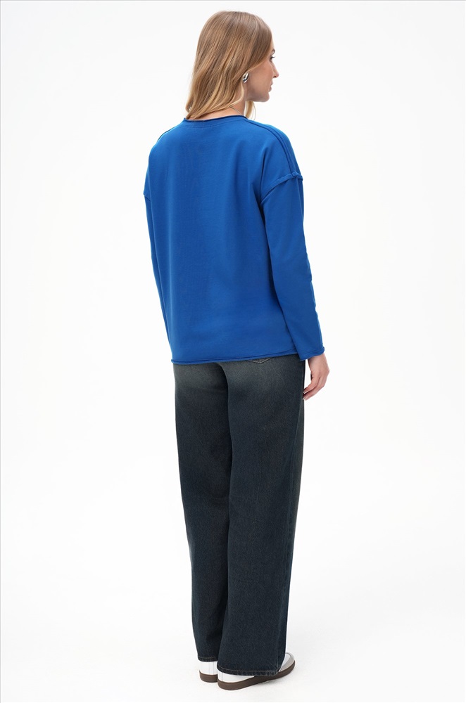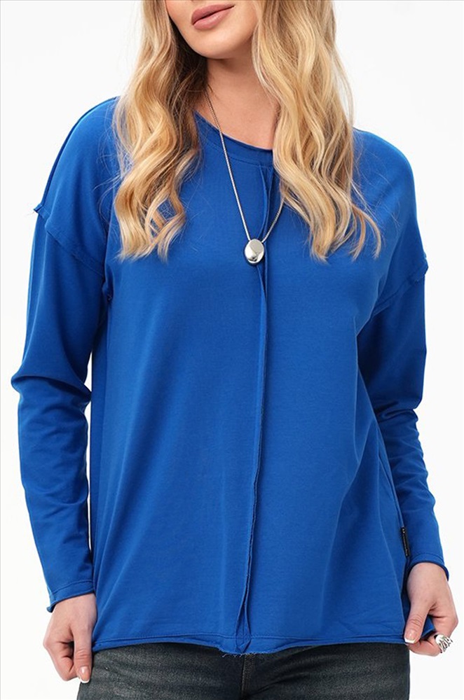 Комфорт с характером — синий женский лонгслив в стиле оверсайз создаёт расслабленное настроение и стильно завершает повседневный образ. Свободный хлопковый лонг идеален для лета, прохладных осенних вечеров и в демисезон.
