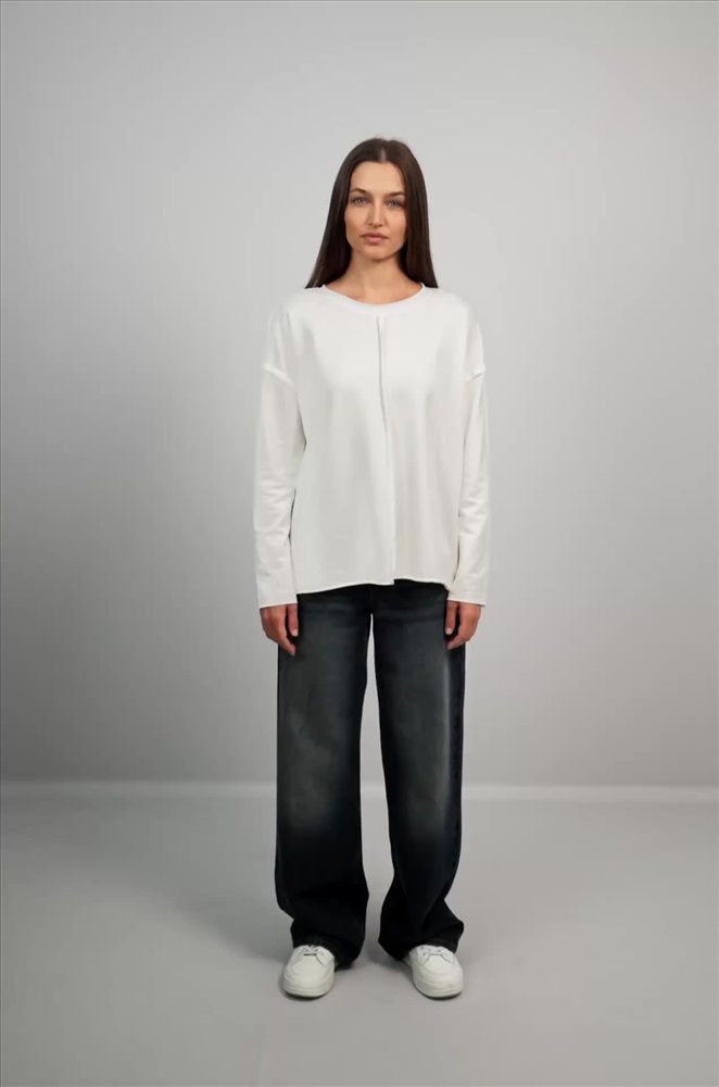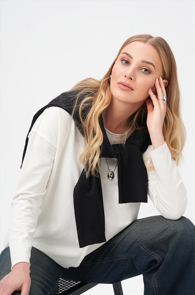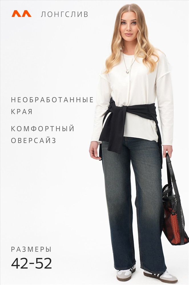 Комфорт с характером — белый женский лонгслив в стиле оверсайз создаёт расслабленное настроение и стильно завершает повседневный образ. Свободный хлопковый лонг идеален для лета, прохладных осенних вечеров и в демисезон.