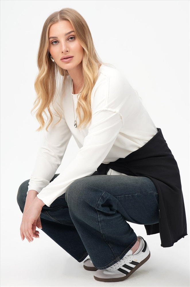 Преимущества: – плотный трикотаж (футер 240 г/м²) — не просвечивает, отлично держит форму; – натуральный хлопок с лайкрой — мягкий, эластичный, приятный к телу; – наружные необработанные швы — трендовый акцент в духе минимализма; – спущенная линия плеч и круглый вырез — комфортно и удобно на каждый день; – универсальный дизайн — подходит как базовый слой осенью. Лонгслив прямого кроя — выбор для женщин, которые ценят свободу движений и натуральные ткани. Трикотажный лонг пригодится для прогулок, учёбы, отдыха и путешествий.