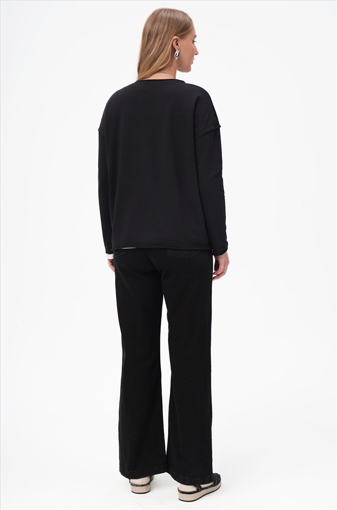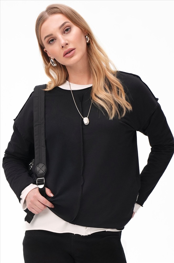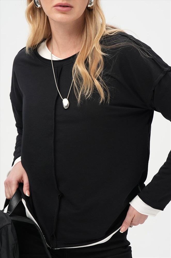 Комфорт с характером — черный женский лонгслив в стиле оверсайз создаёт расслабленное настроение и стильно завершает повседневный образ. Свободный хлопковый лонг идеален для лета, прохладных осенних вечеров и в демисезон.