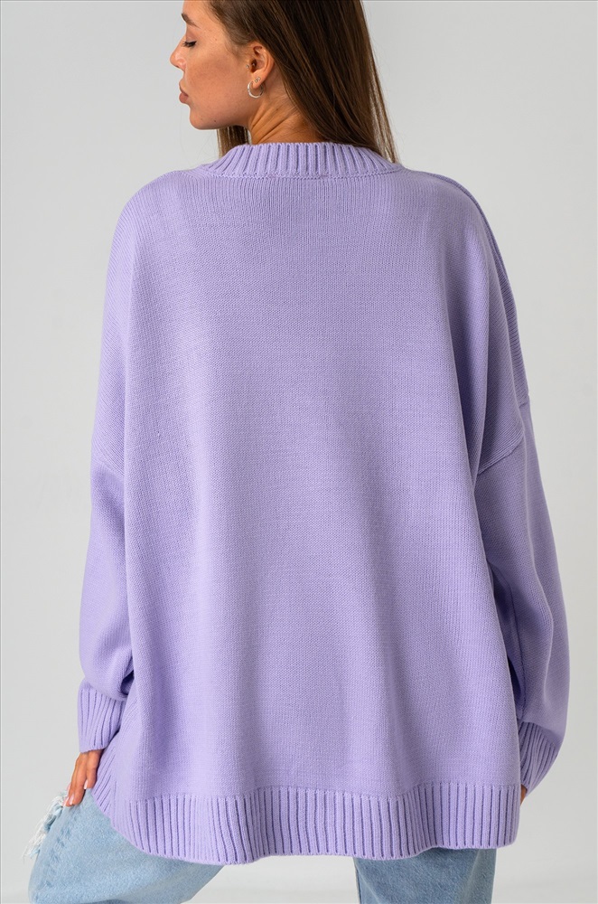 Вязаное трикотажное полотно из хлопка и шерсти делает свитер onesize теплым и идеальным для весенней погоды и даже зимних дней. Благодаря добавлению акрила демисезонный свитер лавандового цвета не вытягивается даже после частых стирок.
