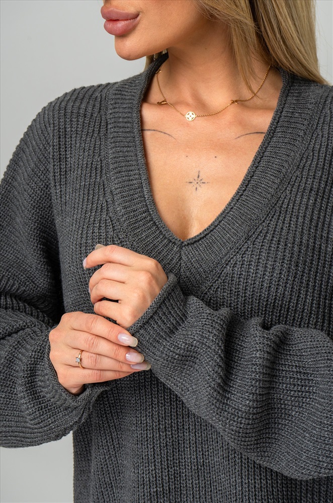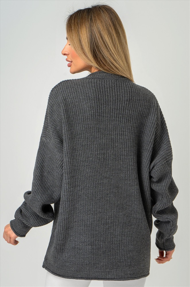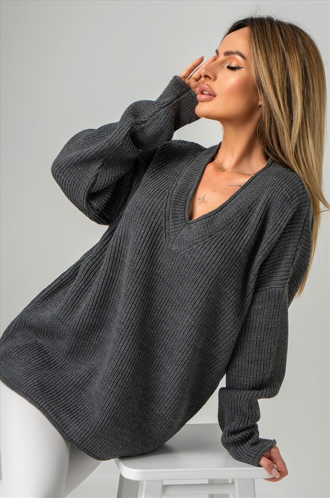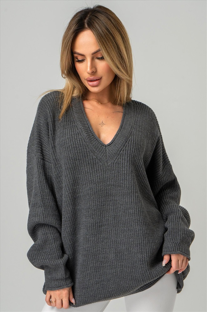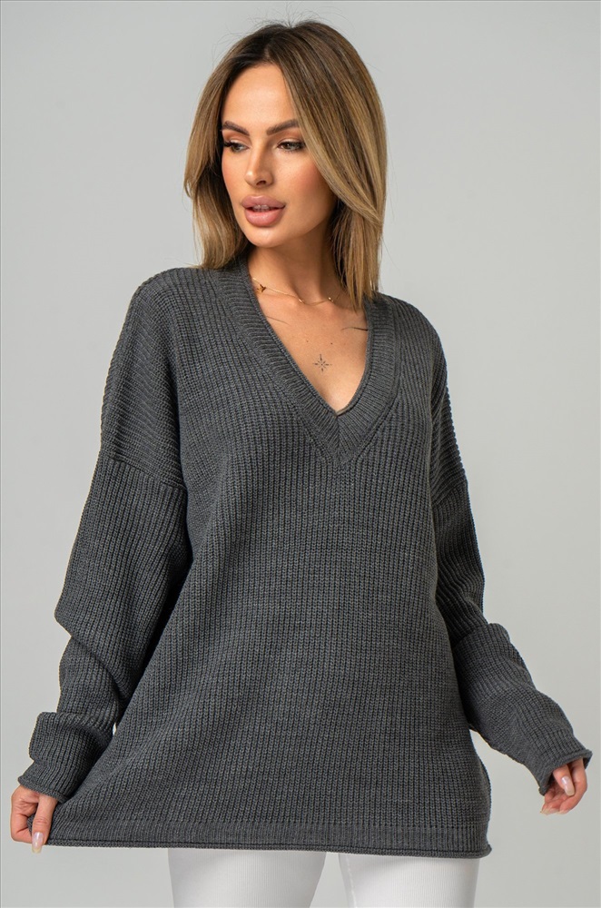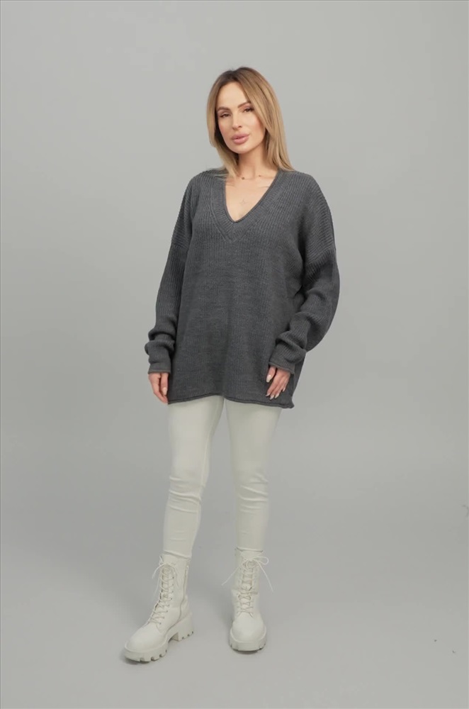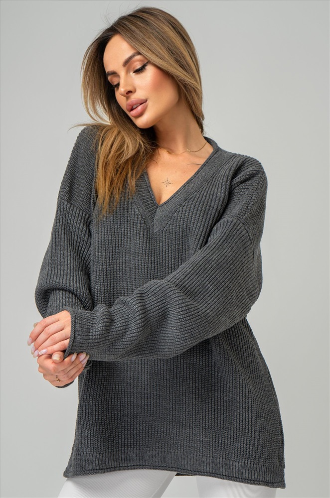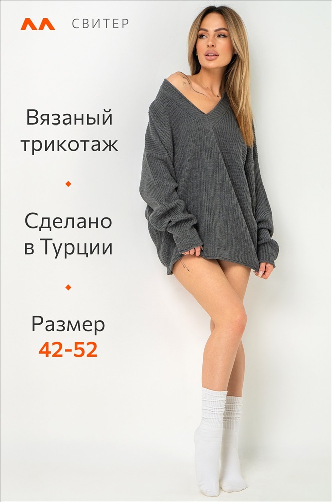Окутывающий нежностью и заботой свитер антрацитового цвета выполнен из акрила и шерсти. Удлиненный силуэт, крой oversize, v-образный вырез, длинные рукава – в этом джемпере для женщин есть все, что поможет оставаться стильной в любой ситуации! Вязаное трикотажное полотно из хлопка и шерсти делает свитер onesize теплым и идеальным для весенней погоды и даже зимних дней. Благодаря добавлению акрила демисезонный свитер не вытягивается даже после частых стирок. Модель объёмного силуэта со спущенной линией плеча и длинными рукавами подчеркнёт твоё бунтарское настроение. Серый свитер из вязаного трикотажа поможет создать романтичный образ. Он станет крутой основой для повседневных образов в стиле smart casual (смарт кэжуал) в осенние и зимние дни. Однотонный джемпер не оставит девушку незамеченной на прогулке осенью. Морозной зимой утепленный джемпер поможет создать уютный многослойный образ. Модель Ирина, ее рост 167, параметры: 84-58-87. На ней единый размер 42-52.