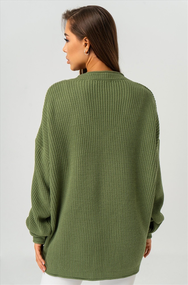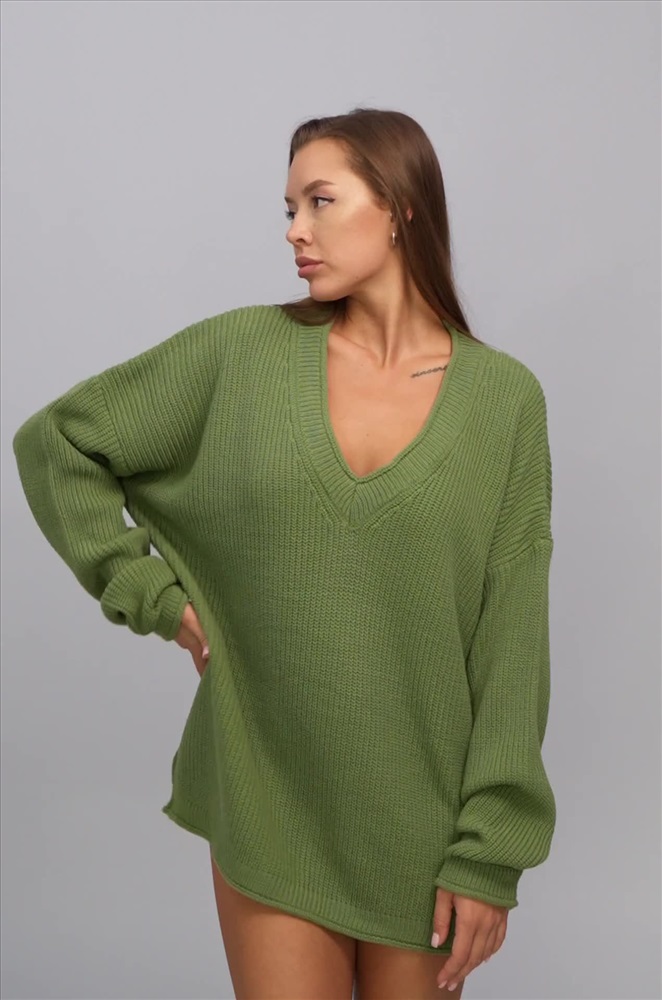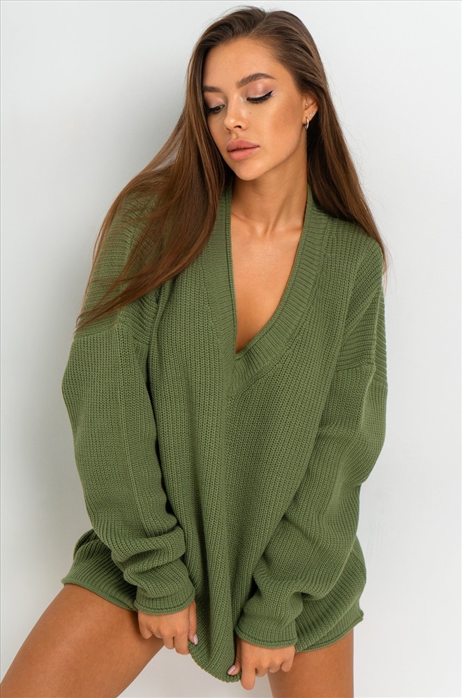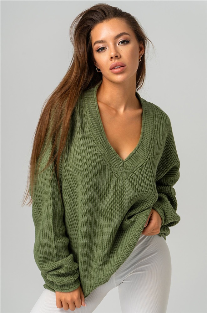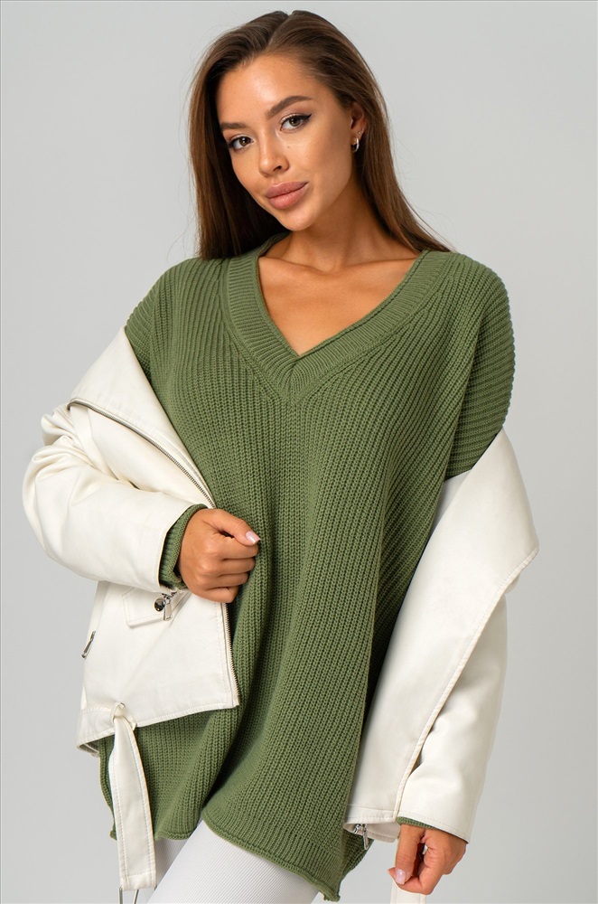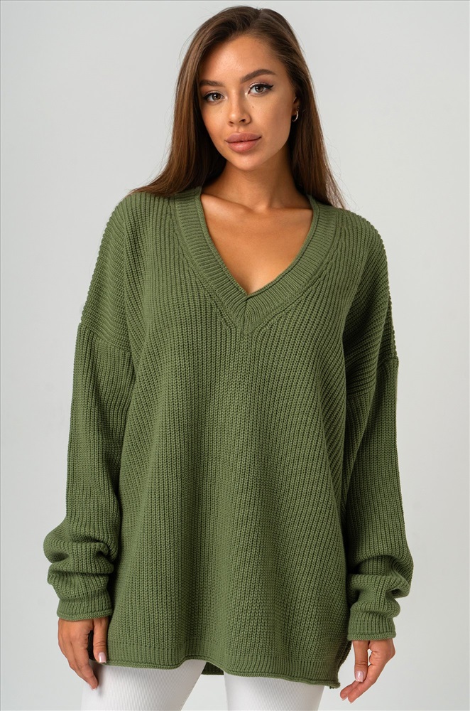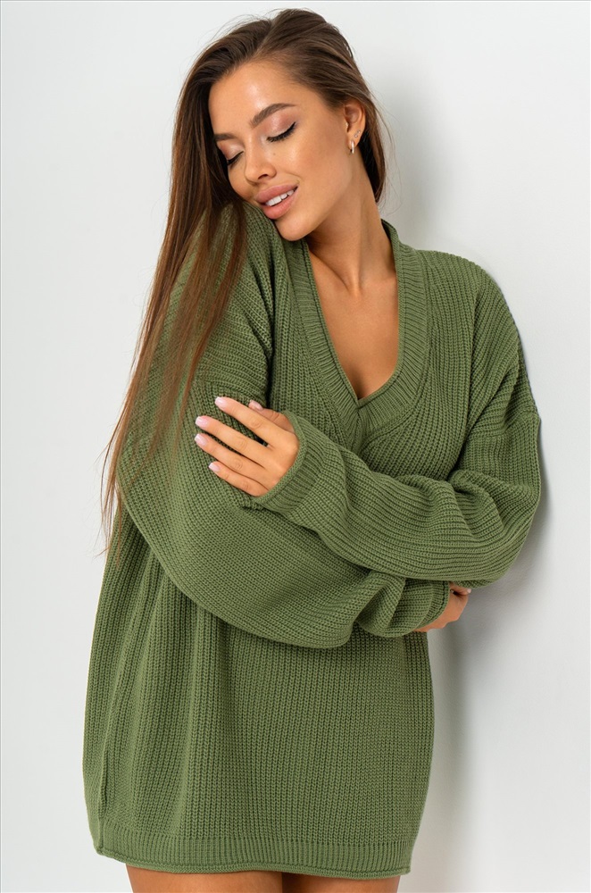Окутывающий нежностью и заботой зеленый свитер выполнен из акрила и шерсти. Удлиненный силуэт, крой oversize, v-образный вырез, длинные рукава – в этом джемпере для женщин есть все, что поможет оставаться стильной в любой ситуации! Вязаное трикотажное полотно из хлопка и шерсти делает свитер onesize теплым и идеальным для весенней погоды и даже зимних дней. Благодаря добавлению акрила демисезонный свитер не вытягивается даже после частых стирок. Модель объёмного силуэта со спущенной линией плеча и длинными рукавами подчеркнёт твоё бунтарское настроение. Свитер из вязаного трикотажа поможет создать романтичный образ. Он станет крутой основой для повседневных образов в стиле smart casual (смарт кэжуал) в осенние и зимние дни. Однотонный джемпер не оставит девушку незамеченной на прогулке осенью. Морозной зимой утепленный джемпер поможет создать уютный многослойный образ. Модель Анфиса, ее рост 170, параметры: 88-67-97. На ней единый размер 42-52.