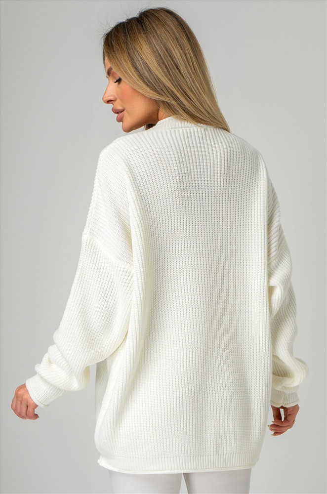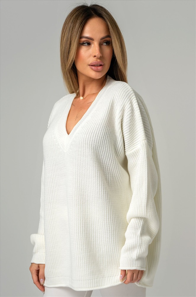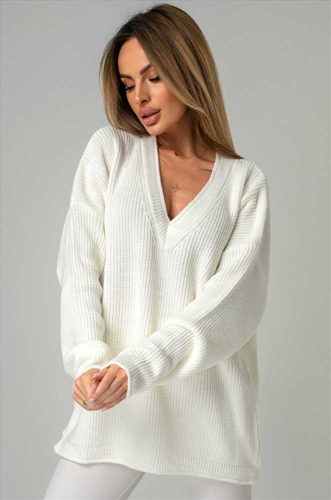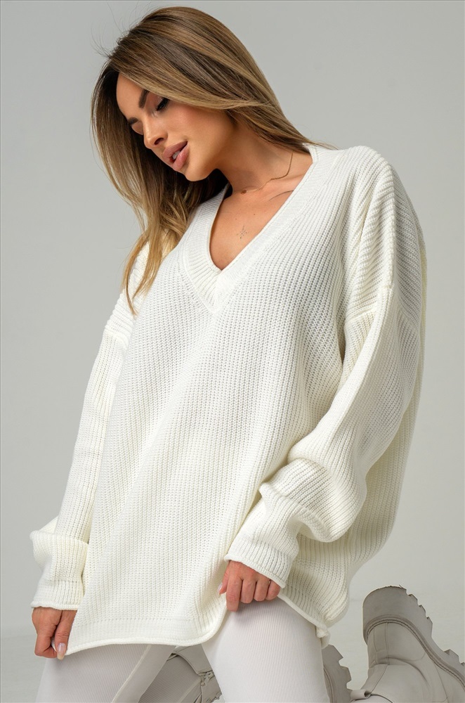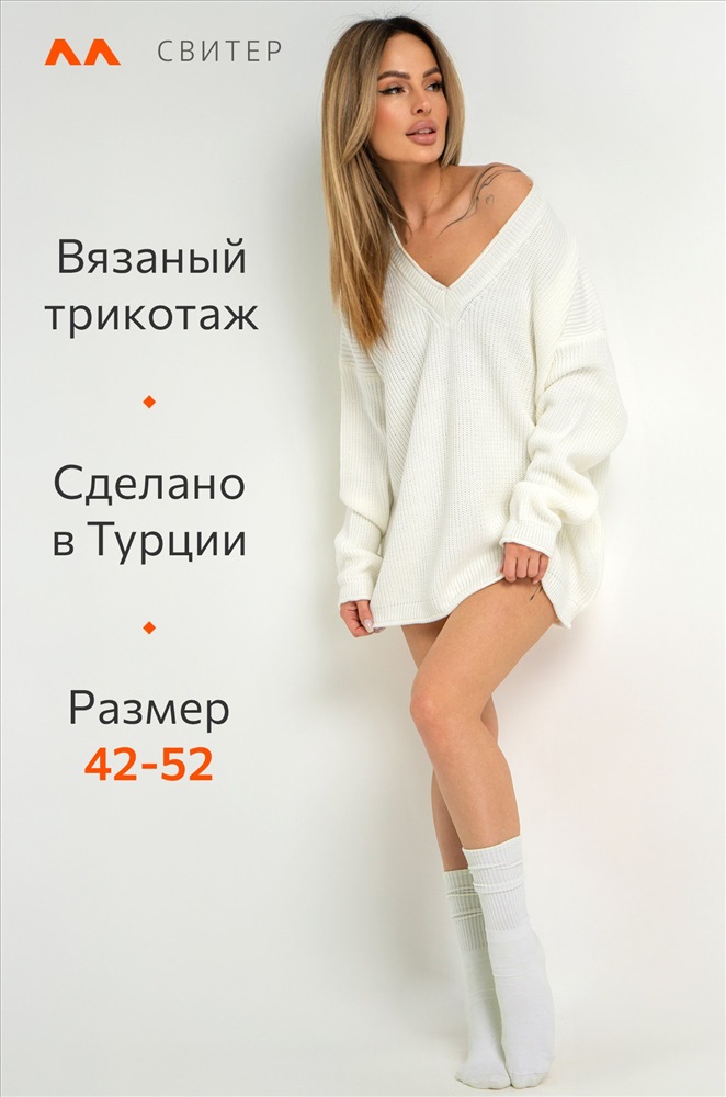 Окутывающий нежностью и заботой белый свитер выполнен из акрила и шерсти. Удлиненный силуэт, крой oversize, v-образный вырез, длинные рукава – в этом джемпере для женщин есть все, что поможет оставаться стильной в любой ситуации! Вязаное трикотажное полотно из хлопка и шерсти делает свитер onesize теплым и идеальным для весенней погоды и даже зимних дней. Благодаря добавлению акрила демисезонный свитер не вытягивается даже после частых стирок. Модель объёмного силуэта со спущенной линией плеча и длинными рукавами подчеркнёт твоё бунтарское настроение. Свитер из вязаного трикотажа поможет создать романтичный образ. Он станет крутой основой для повседневных образов в стиле smart casual (смарт кэжуал) в осенние и зимние дни. Однотонный джемпер не оставит девушку незамеченной на прогулке осенью. Морозной зимой утепленный джемпер поможет создать уютный многослойный образ. Модель Ирина, ее рост 167, параметры: 84-58-87. На ней единый размер 42-52.