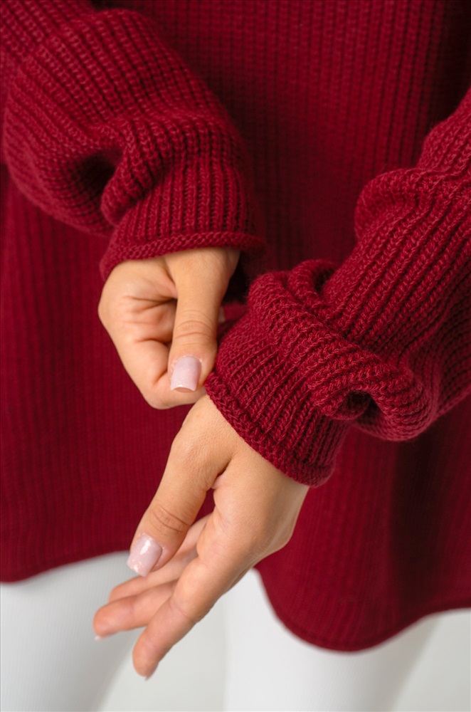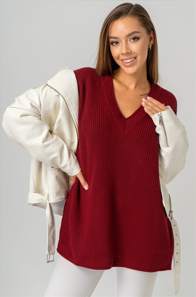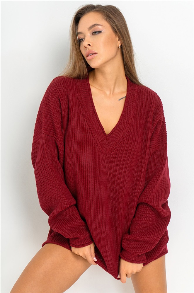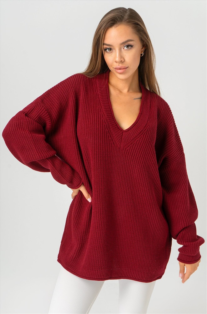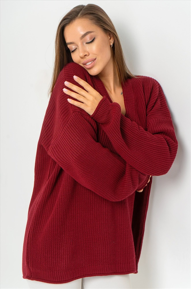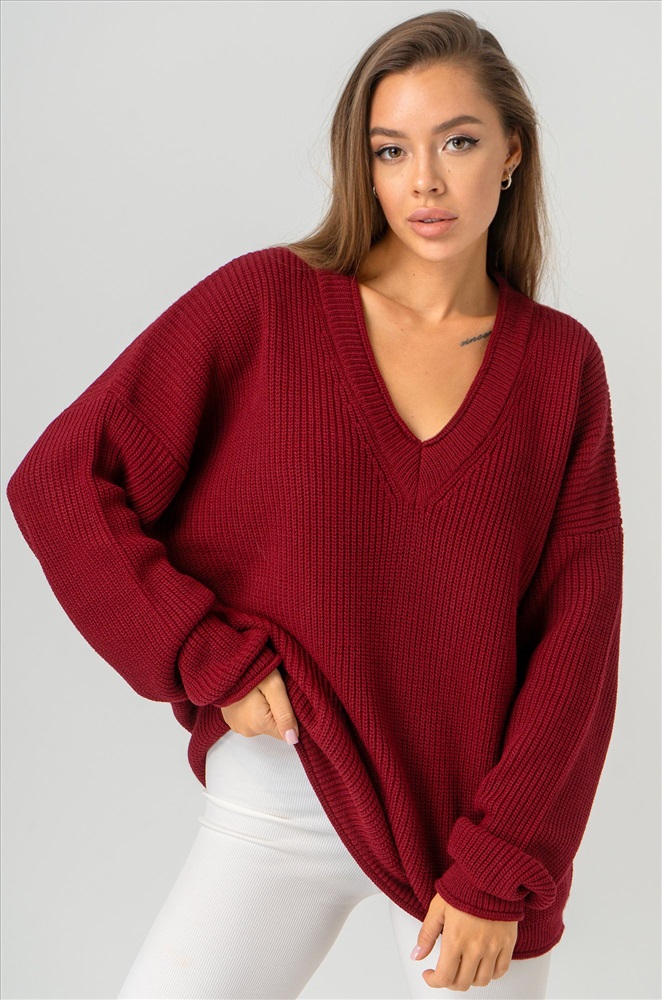 Окутывающий нежностью и заботой бордовый свитер выполнен из акрила и шерсти. Удлиненный силуэт, крой oversize, v-образный вырез, длинные рукава – в этом джемпере для женщин есть все, что поможет оставаться стильной в любой ситуации! Вязаное трикотажное полотно из хлопка и шерсти делает свитер onesize теплым и идеальным для весенней погоды и даже зимних дней. Благодаря добавлению акрила демисезонный свитер не вытягивается даже после частых стирок. Модель объёмного силуэта со спущенной линией плеча и длинными рукавами подчеркнёт твоё бунтарское настроение. Красный свитер из вязаного трикотажа поможет создать романтичный образ. Он станет крутой основой для повседневных образов в стиле smart casual (смарт кэжуал) в осенние и зимние дни. Однотонный джемпер не оставит девушку незамеченной на прогулке осенью. Морозной зимой утепленный джемпер вишневого цвета поможет создать уютный многослойный образ. Модель Анфиса, ее рост 170, параметры: 88-67-97. На ней единый размер 42-52.