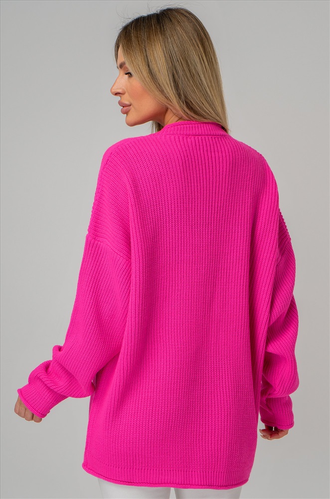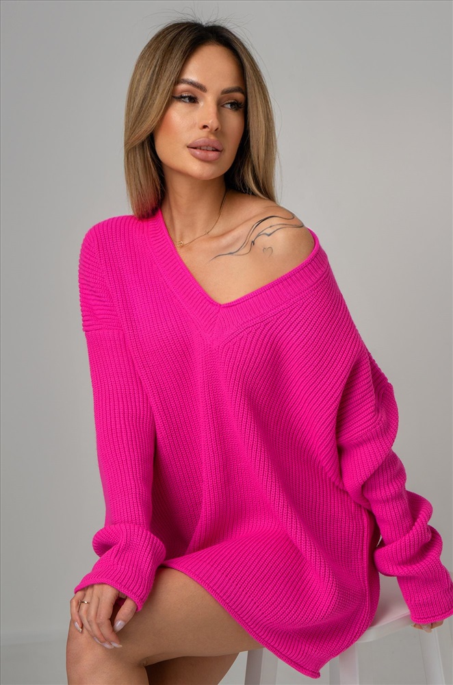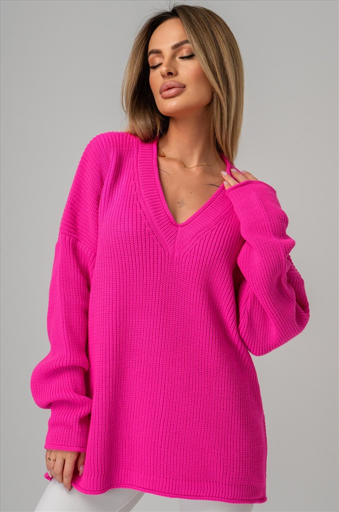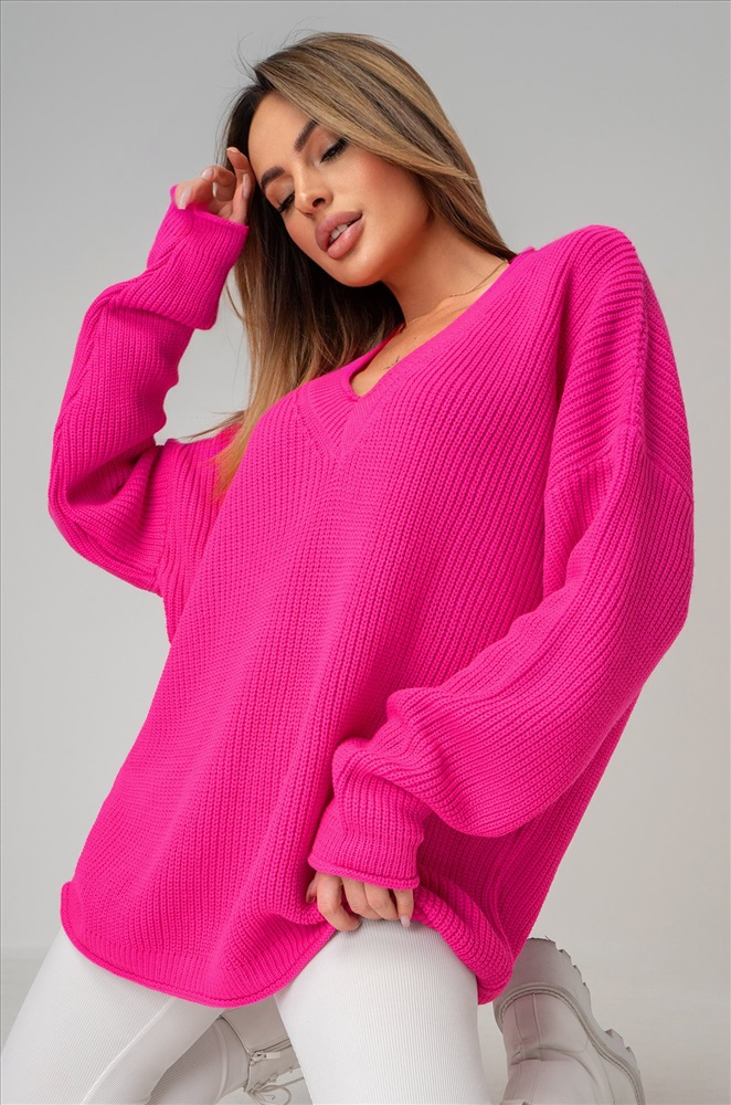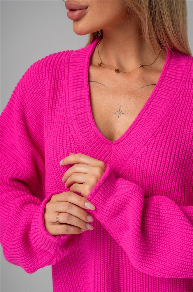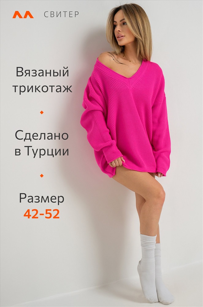Окутывающий нежностью и заботой малиновый свитер выполнен из акрила и шерсти. Удлиненный силуэт, крой oversize, v-образный вырез, длинные рукава – в этом джемпере для женщин есть все, что поможет оставаться стильной в любой ситуации! Вязаное трикотажное полотно из хлопка и шерсти делает свитер onesize теплым и идеальным для весенней погоды и даже зимних дней. Благодаря добавлению акрила демисезонный свитер не вытягивается даже после частых стирок. Модель объёмного силуэта со спущенной линией плеча и длинными рукавами подчеркнёт твоё бунтарское настроение. Яркий розовый свитер из вязаного трикотажа поможет создать романтичный образ. Он станет крутой основой для повседневных образов в стиле smart casual (смарт кэжуал) в осенние и зимние дни. Однотонный джемпер не оставит девушку незамеченной на прогулке осенью. Морозной зимой утепленный джемпер поможет создать уютный многослойный образ. Модель Ирина, ее рост 167, параметры: 84-58-87. На ней единый размер 42-52.