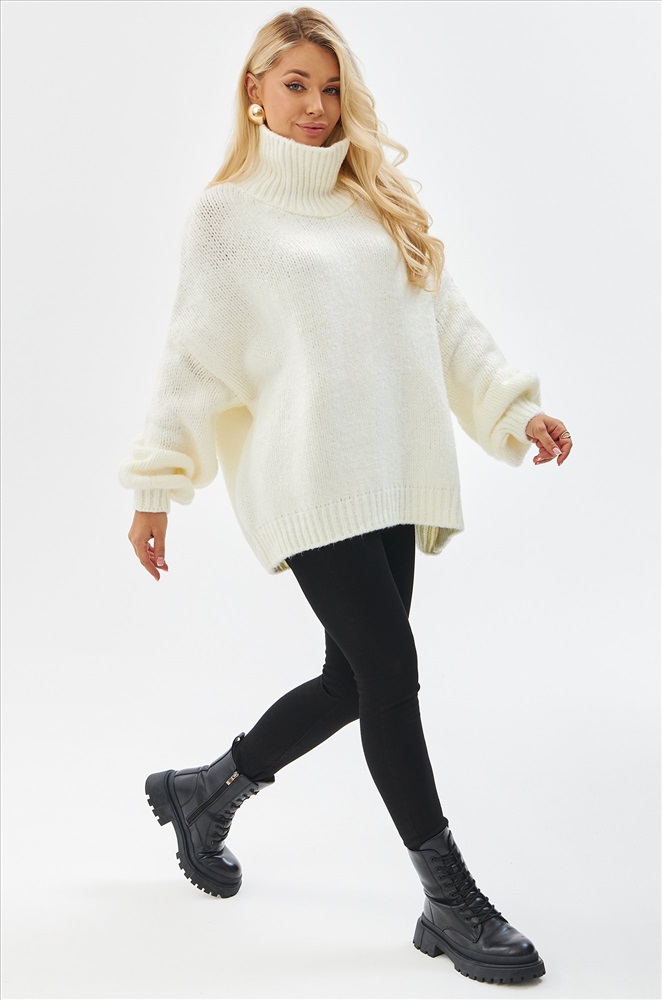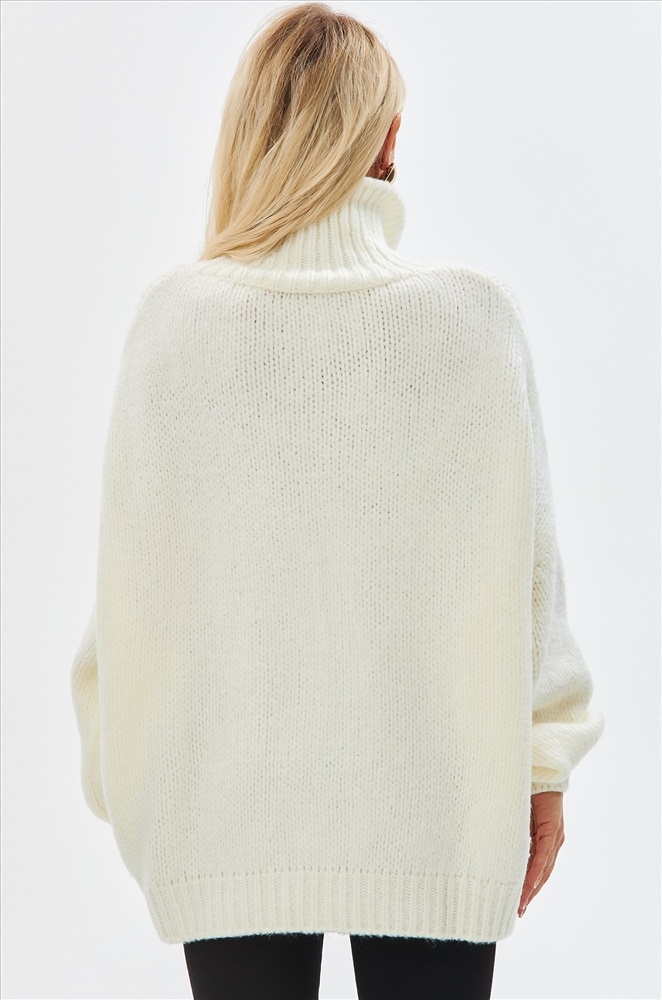 Невероятно мягкий и теплый свитер оверсайз белого цвета обещает стать любимым спутником в демисезон и зимние дни. Современный дизайн и качественная вязка делают его идеальным выбором для тех, кто ценит комфорт и элегантность в одном. Вязаный трикотаж из акрила с добавлением полиэстера, шерсти и хлопка дарит не только тепло, но и комфорт. Акрил делает свитер простым в уходе, а шерсть и хлопок добавляют мягкость и уют. Отличный баланс между теплом и лёгкостью. Свитер выполнен силуэтом оверсайз со спущенным плечом и высоким воротником с отворотом, который можно адаптировать под любые условия, будь то холодный ветер или уютные вечера дома. Крупная гладкая вязка придает модели объемный и пушистый вид, создавая эффект легкости и воздушности. Однотонный белый свитер станет отличным выбором для женщин, которые хотят выглядеть стильно и чувствовать себя комфортно в любое время года. Удобный свободный крой и универсальный цвет делают его идеальным для создания как повседневных, так и более нарядных образов. Благодаря единому размеру он подходит для любого типа фигуры. Модель Анастасия, рост 175 см, параметры 90-62-90 см. На ней свитшот размера 42-52.